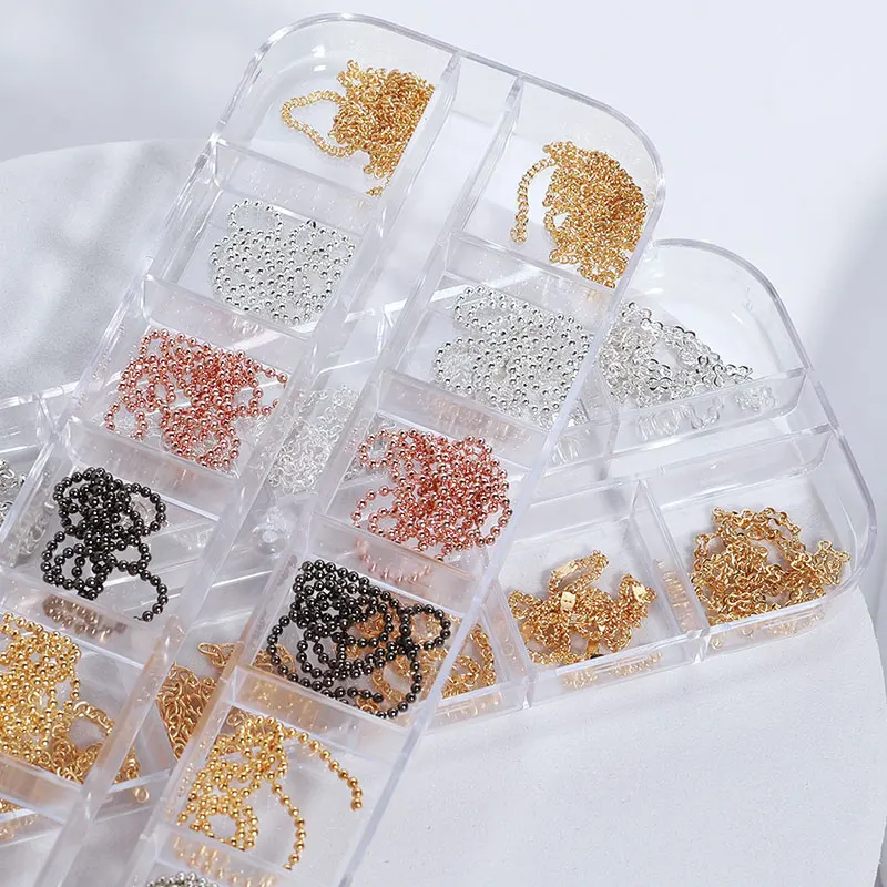 Misscheering 12 Grid Mixed Style Nail Chain Jewelry For DIY Art Decoration Fashion Metal Nails Accessories For Manicure Design
