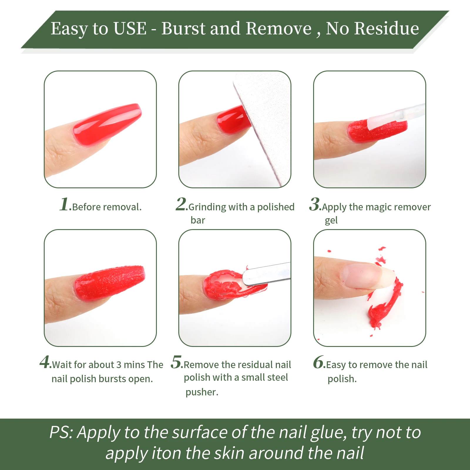 Misscheering 15ml Magic Fast Nail Gel Polish Remover Clean UV Soak Off Semi Permanent Varnish Nail Art Removal Tools Manicure