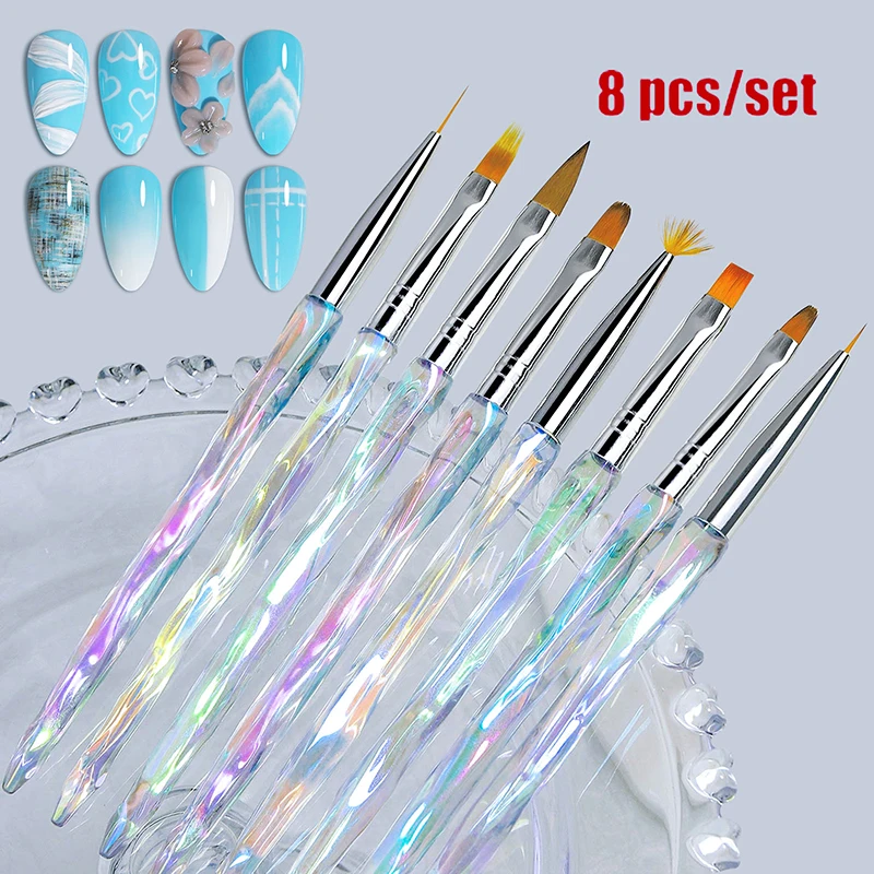 Misscheering 8pcs/set Aurora Acrylic Nail Art Painting Pens for Nail Design Soft Slender Brush Gradient Gel Drawing DIY Brush
