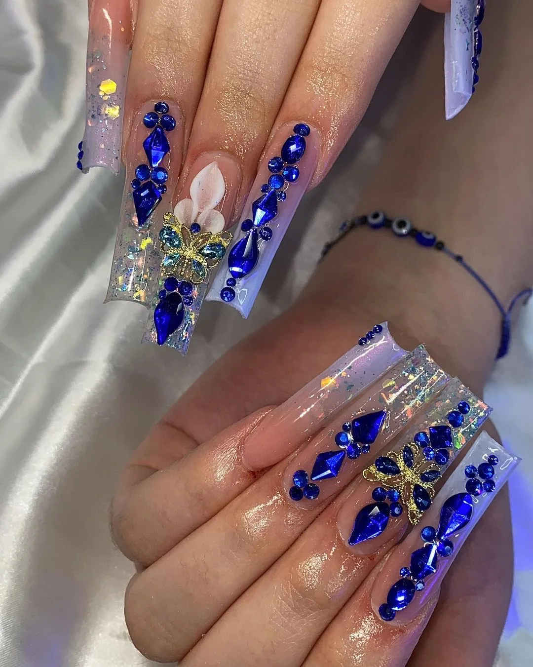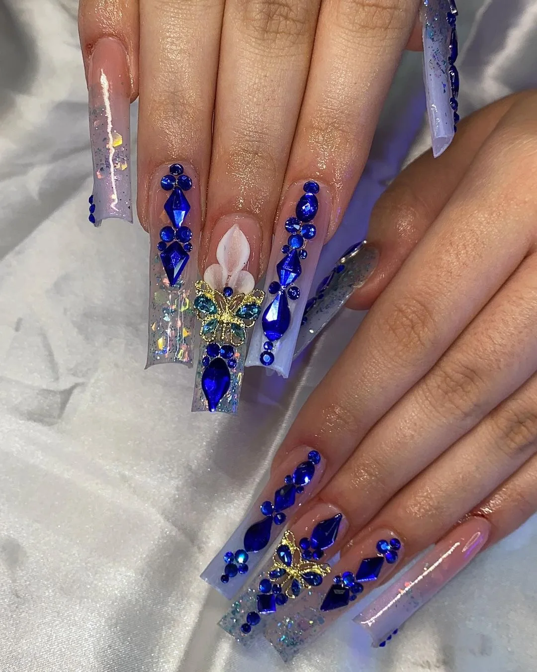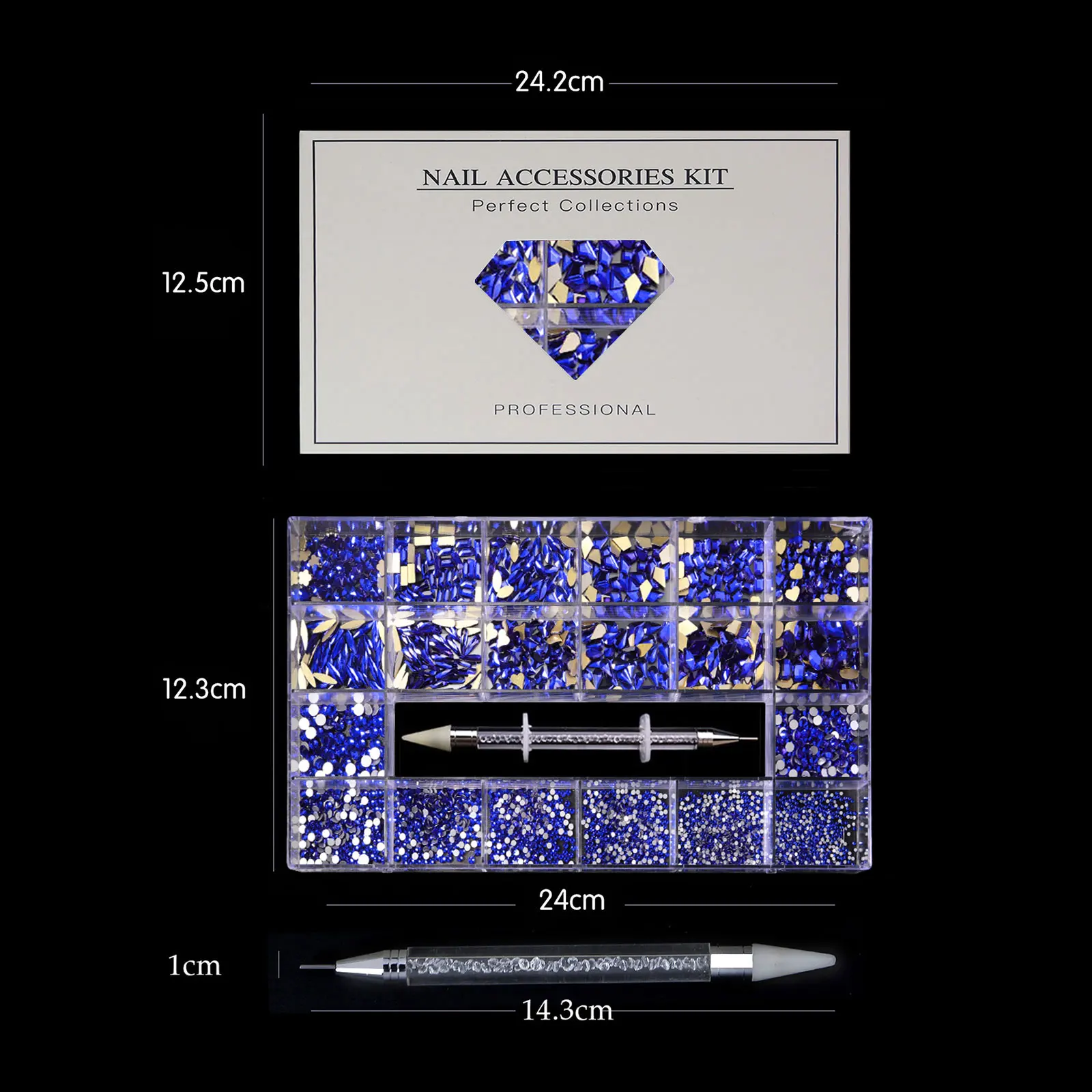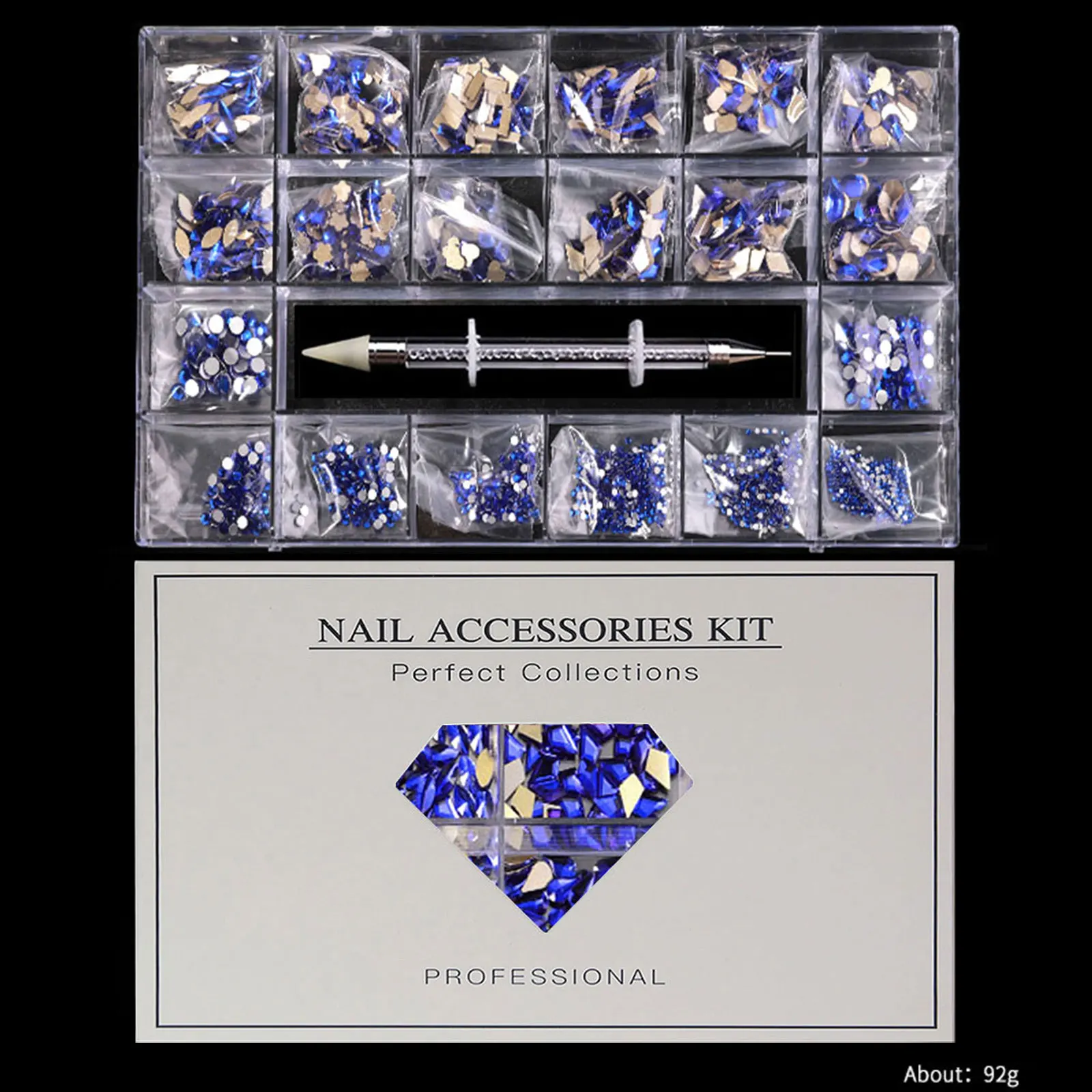 Mixed white Blue green Glass Crystal Diamond Flat Rhinestone Nail Art Decoration 21 Grid Box Nails Accessories Set With 1 Pick U