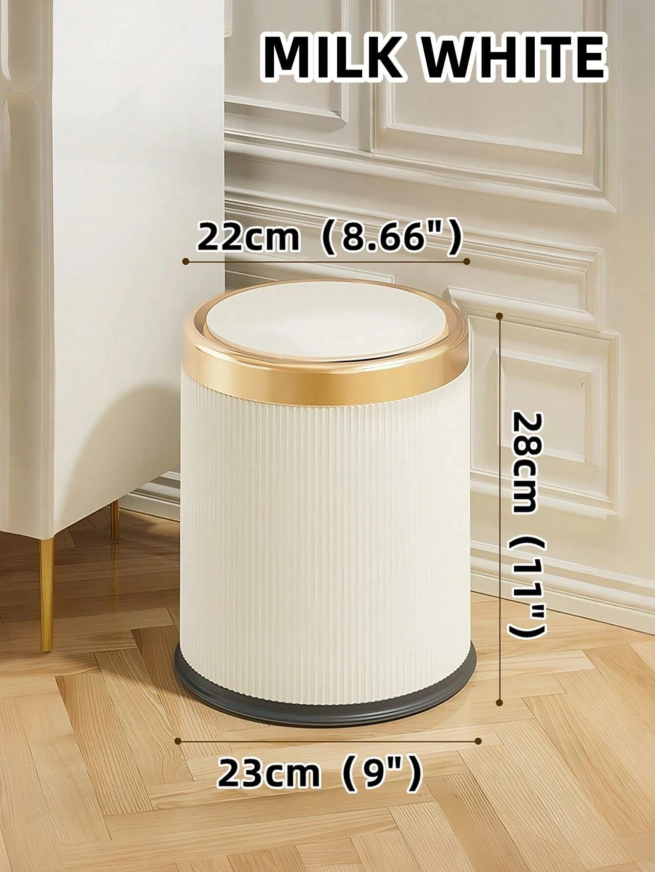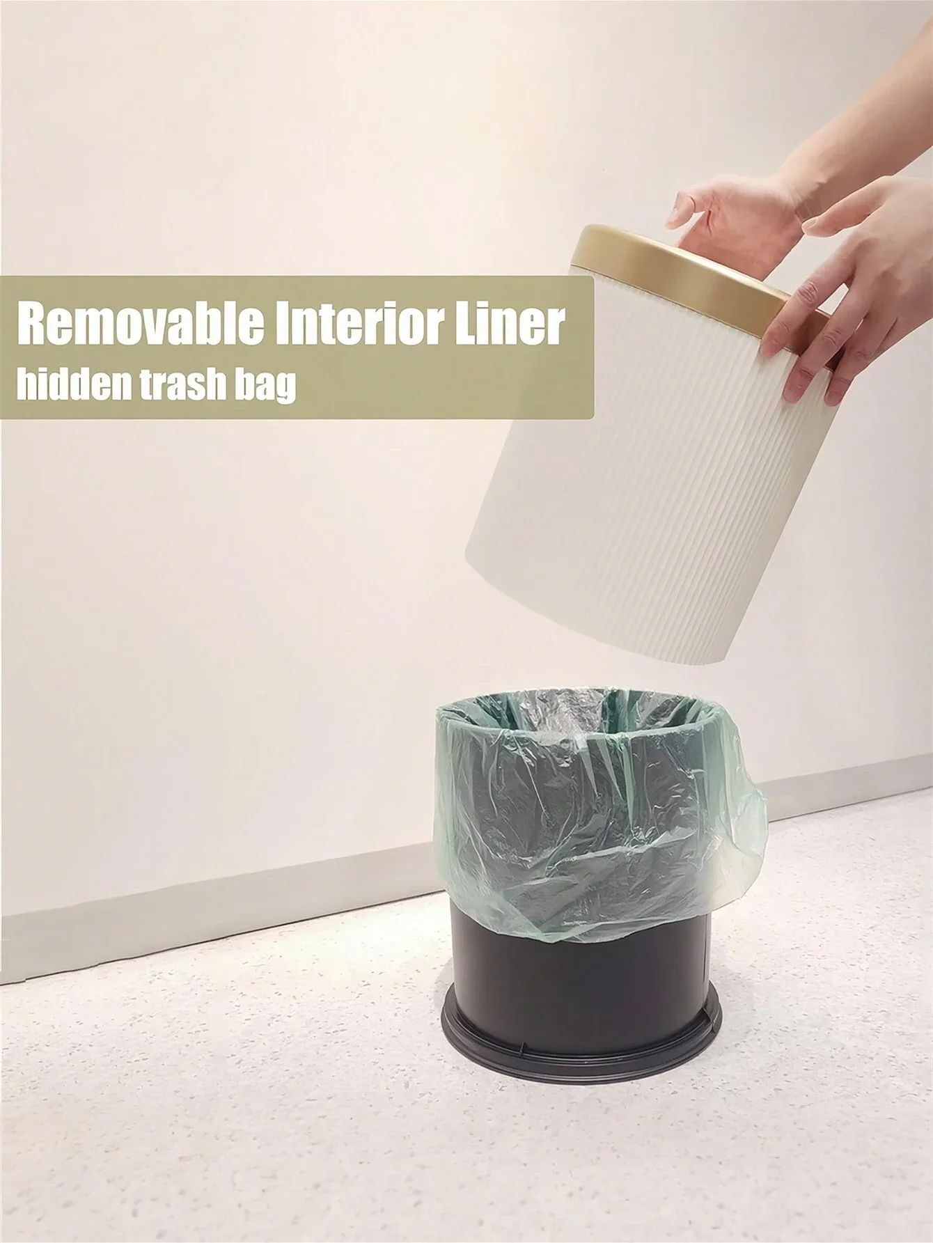 Modern White and Black Double Layered Trash Bin with Press Top Lid for Bathroom, Office and Bedroom