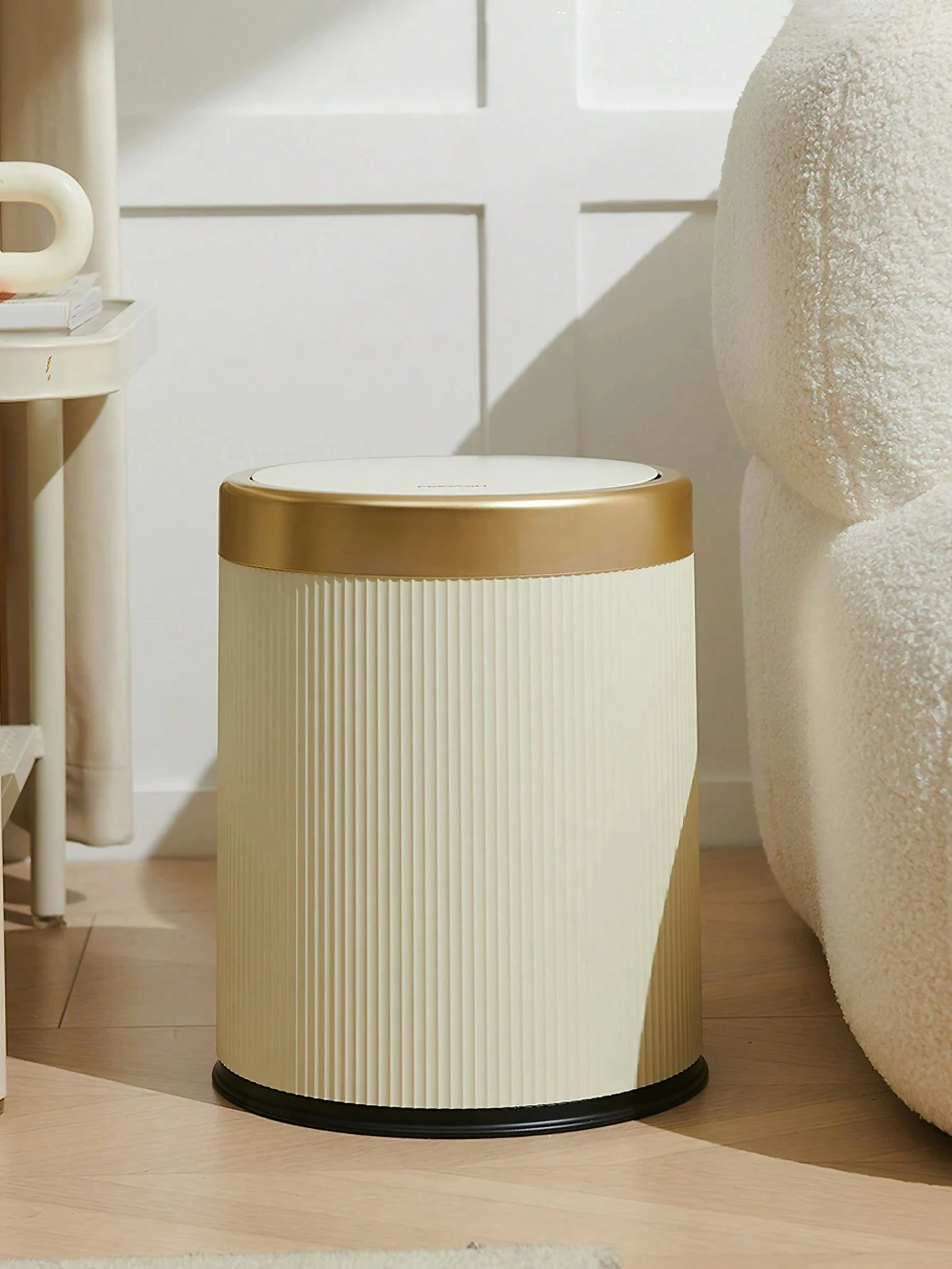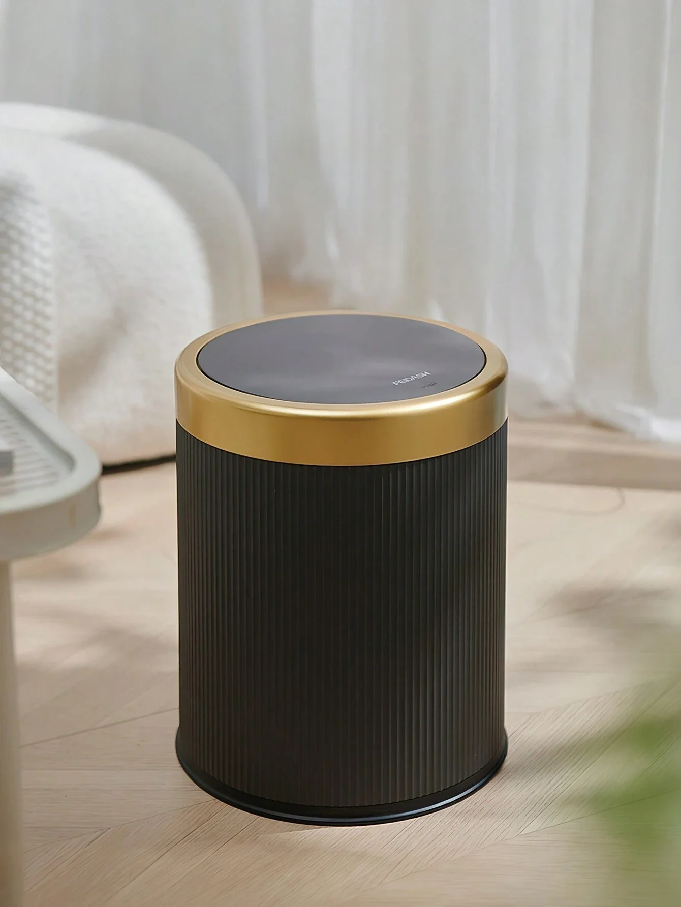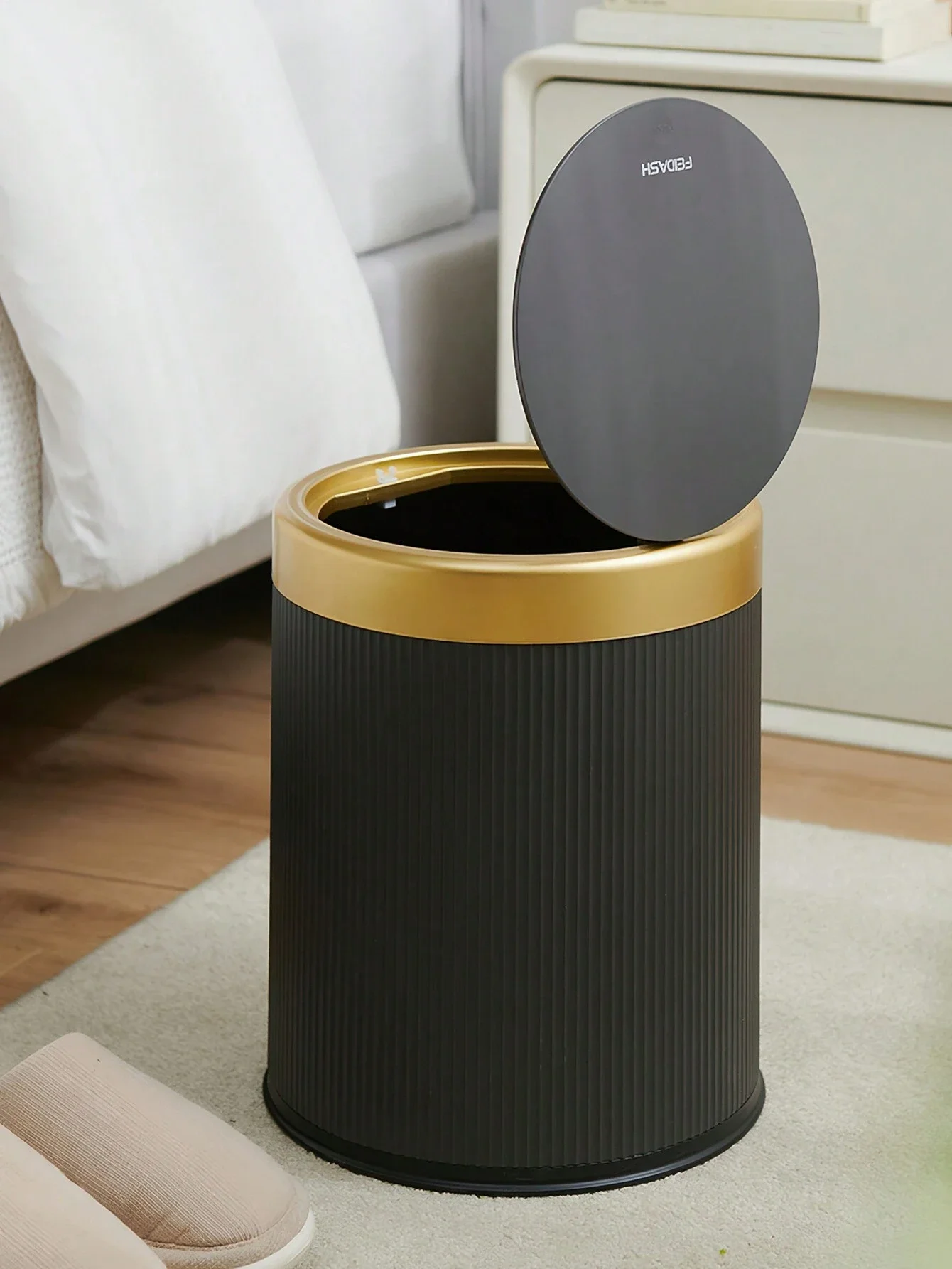 1 review for Modern White and Black Double Layered Trash Bin with Press Top Lid for Bathroom, Office and Bedroom