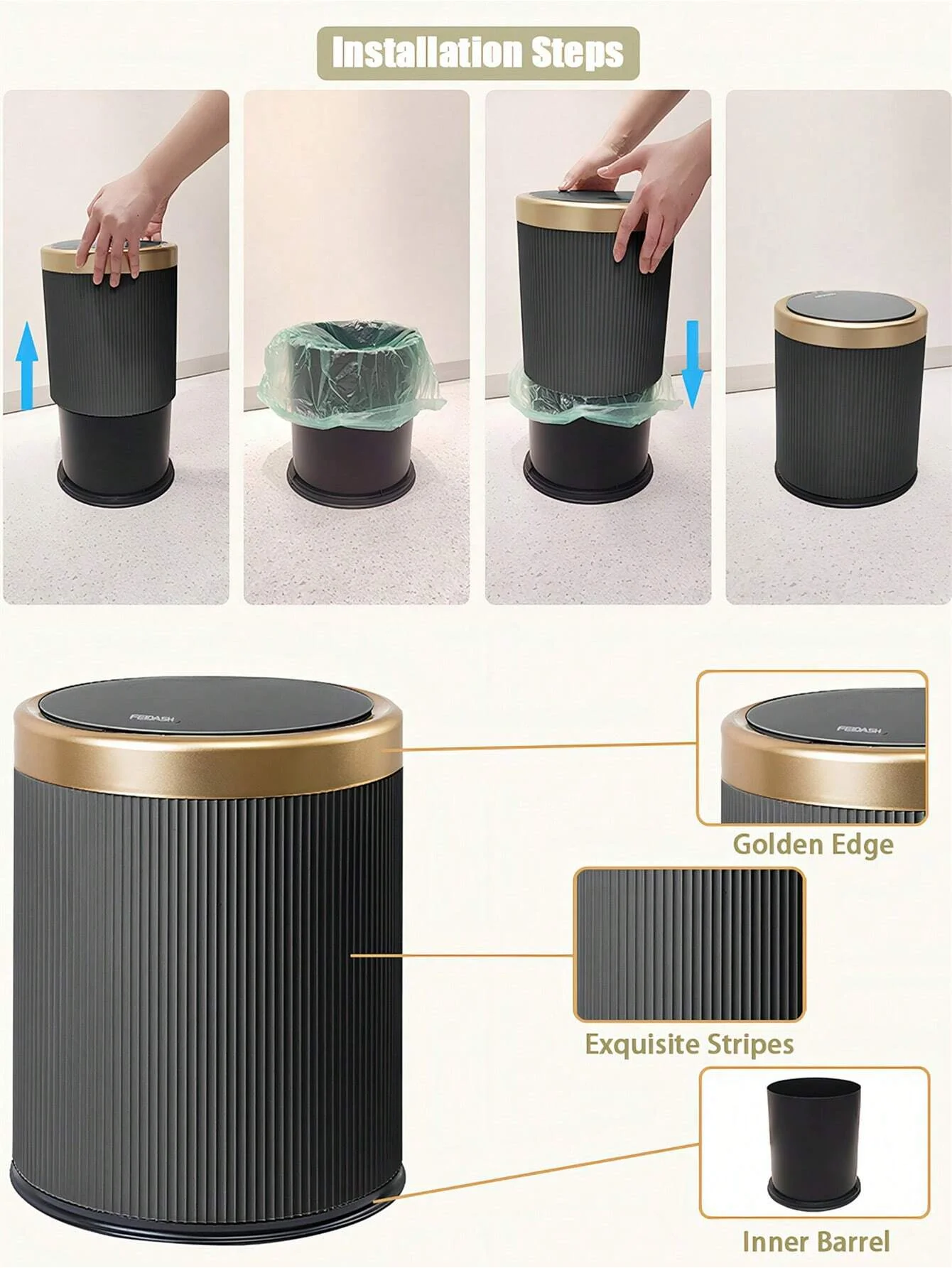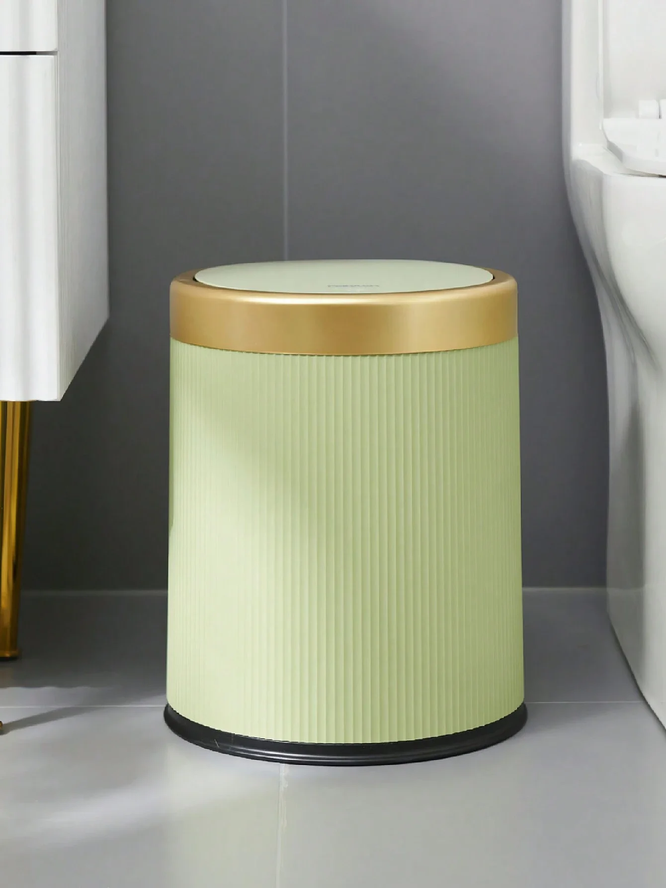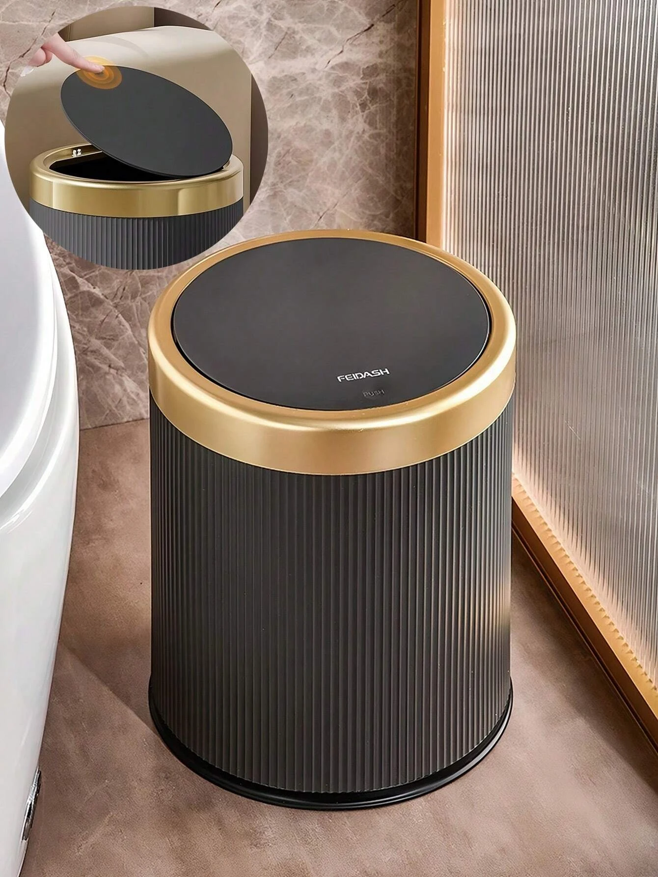 1 review for Modern White and Black Double Layered Trash Bin with Press Top Lid for Bathroom, Office and Bedroom