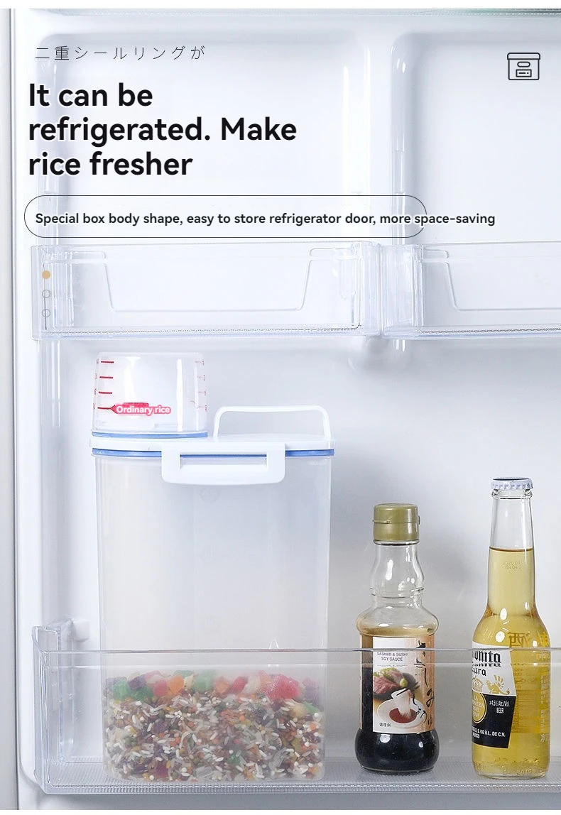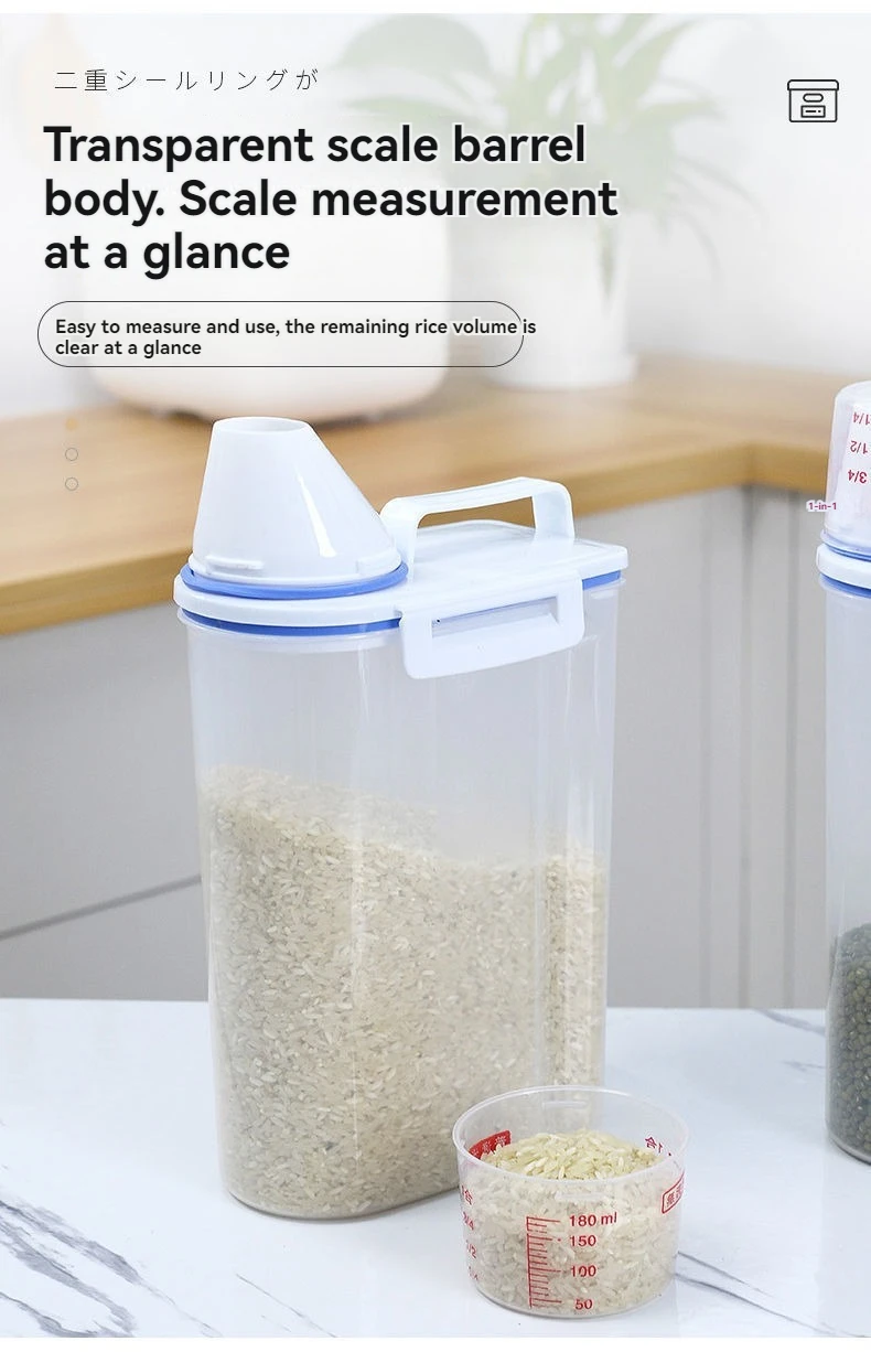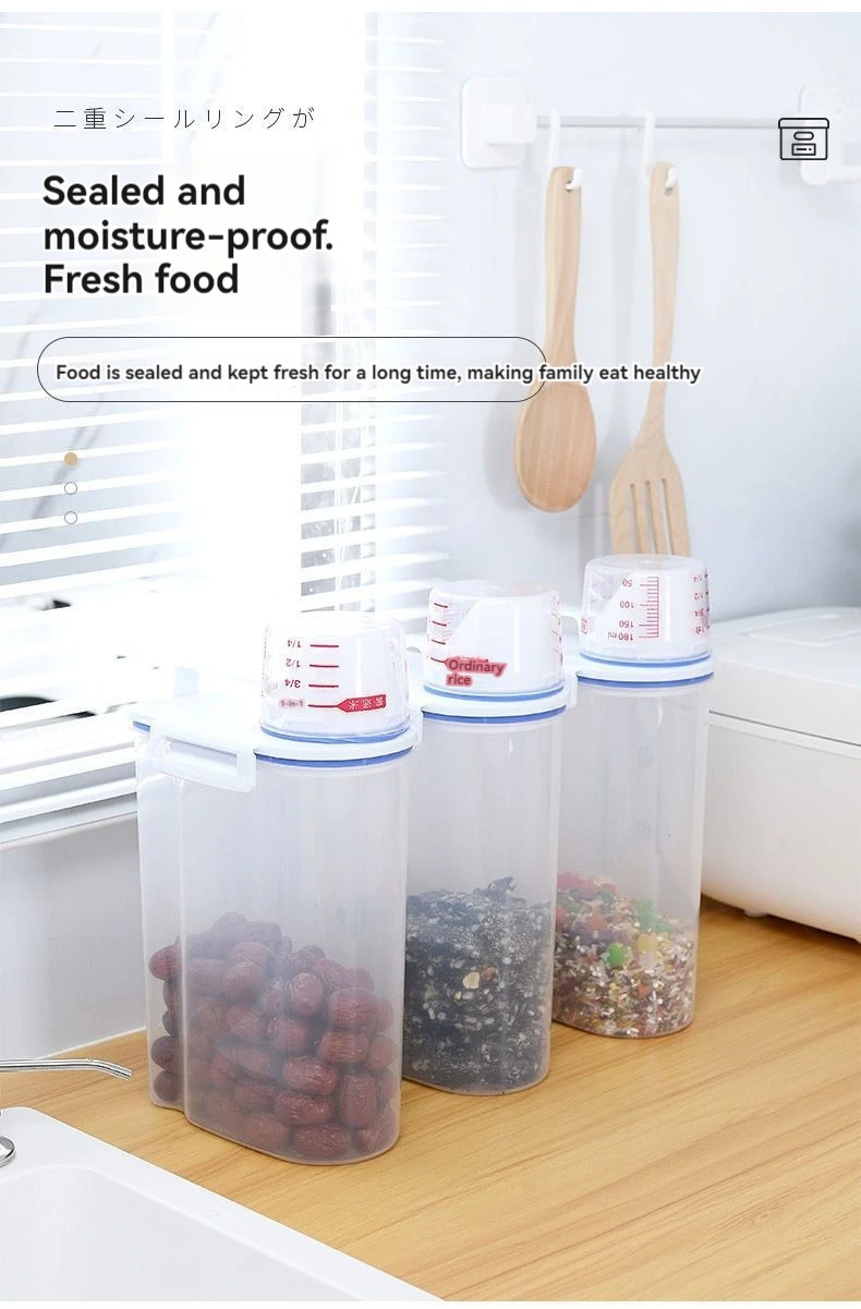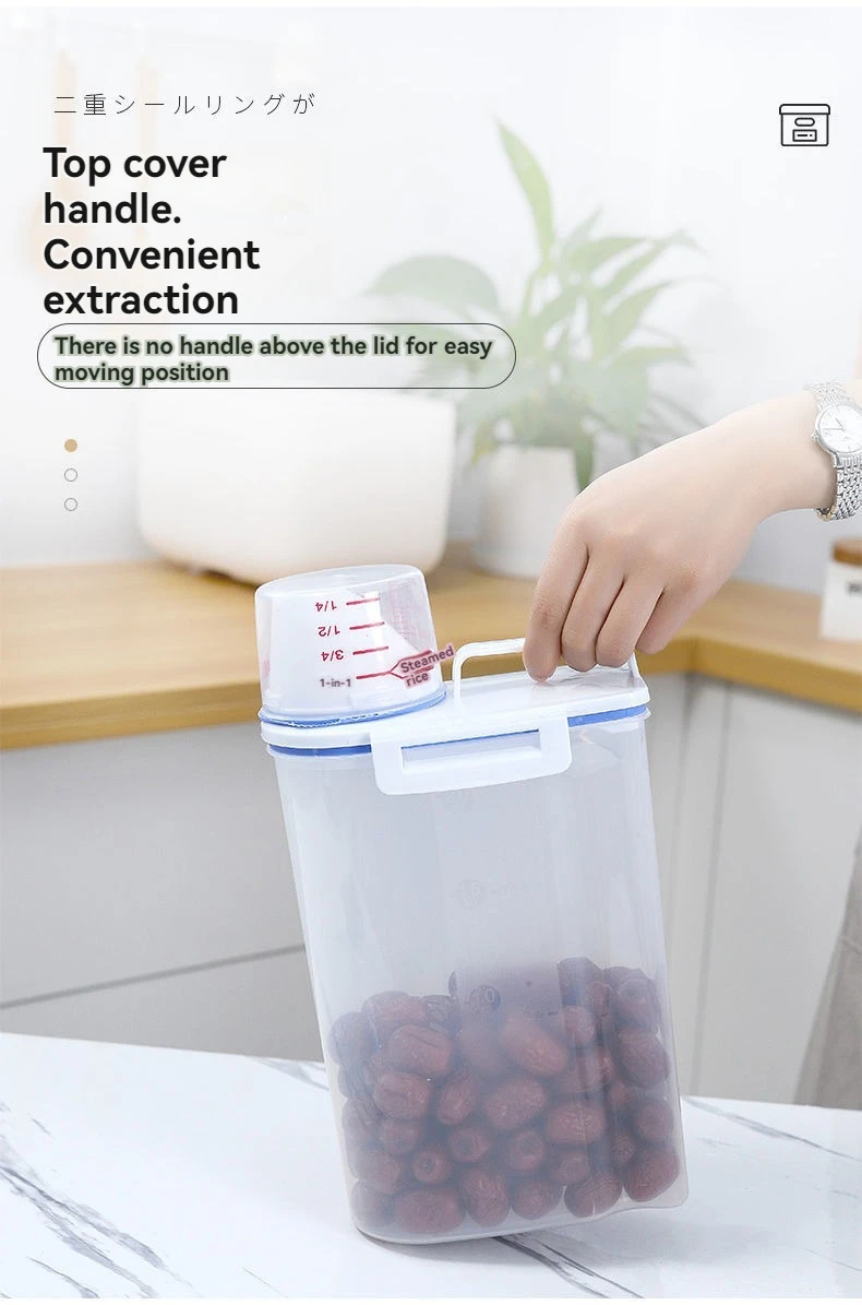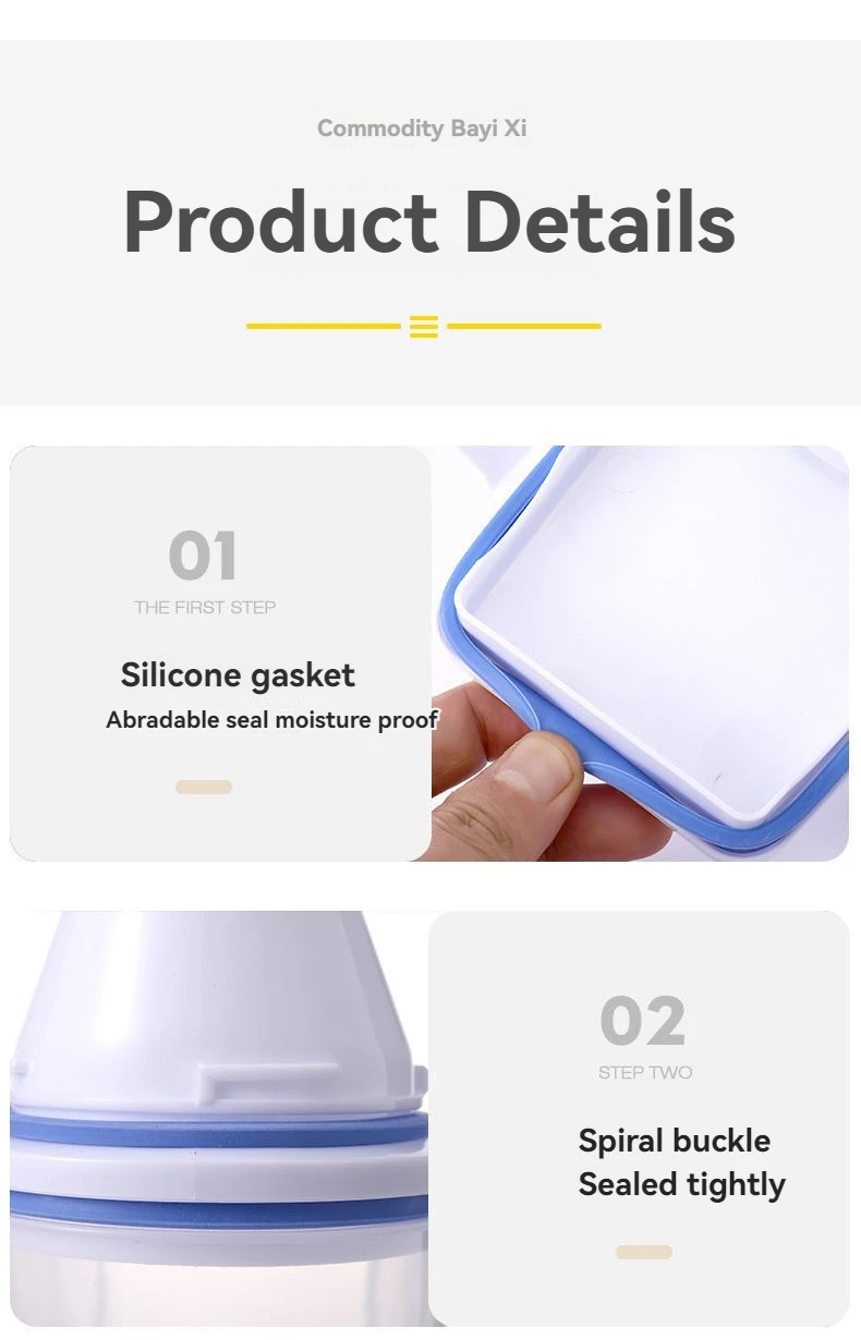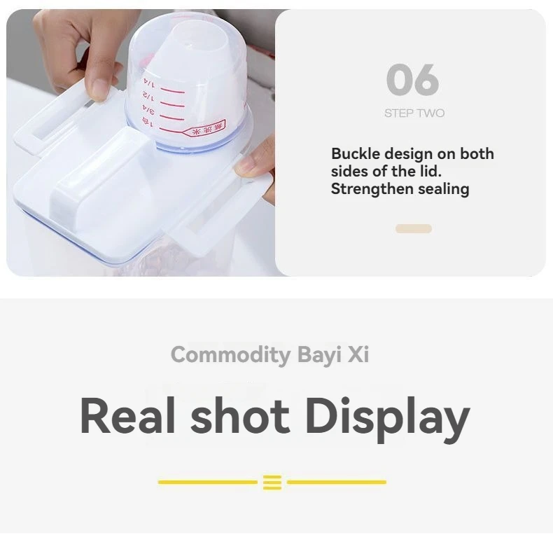 2. The lid and measuring cup are equipped with a double sealing ring to prevent the internal food from moisture and insects.