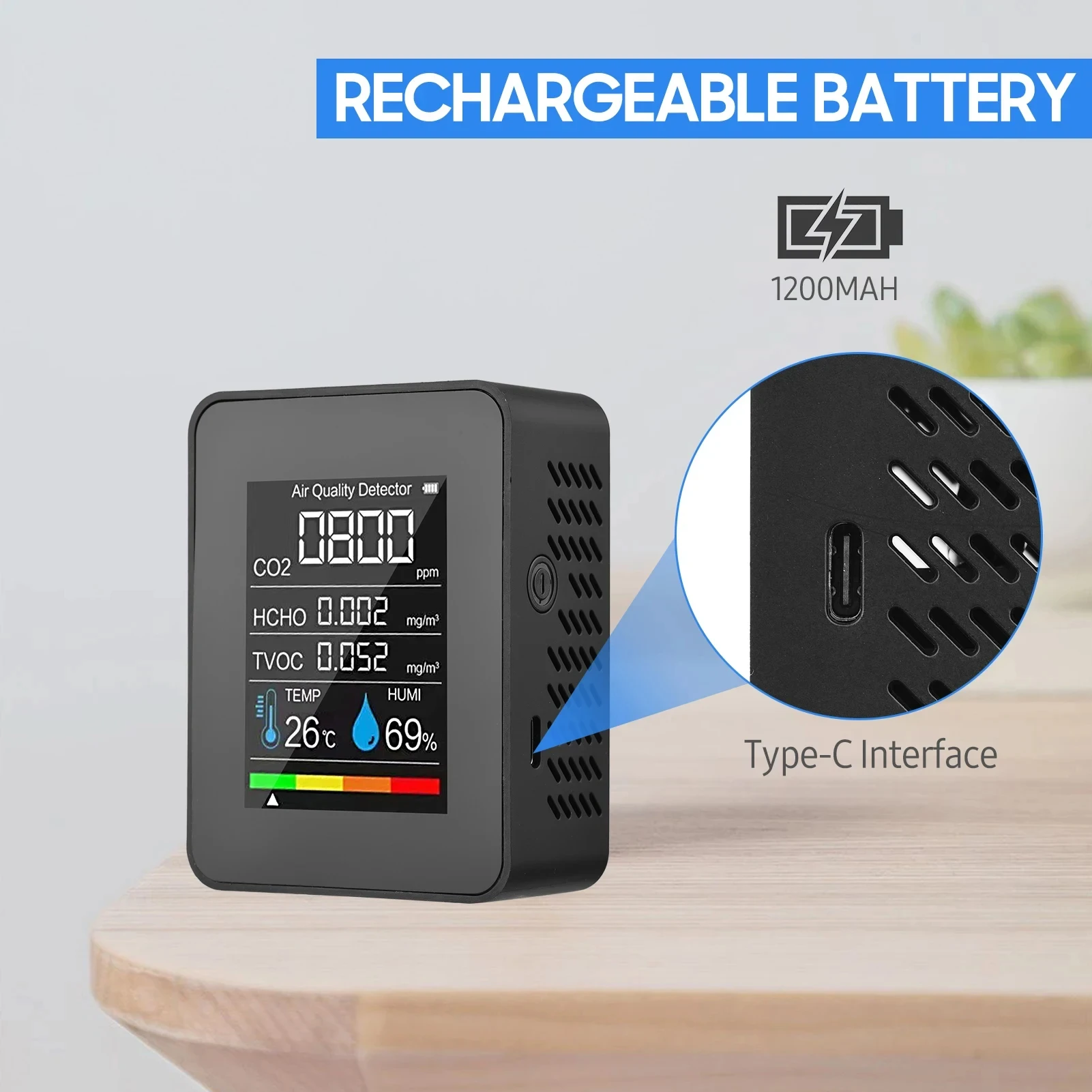 • Carbon Dioxide TVOC HCHO Detector :With the ability to detect carbon dioxide, TVOC, and HCHO, this product is perfect for monitoring the air quality in your home or office.
