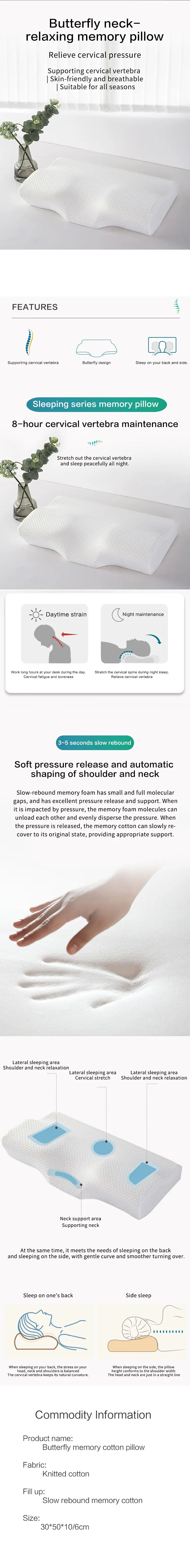 Neck Pillow Slow Rebound Memory Cotton Pillow Cervical Partition Memory Pillow for Anti-snoring