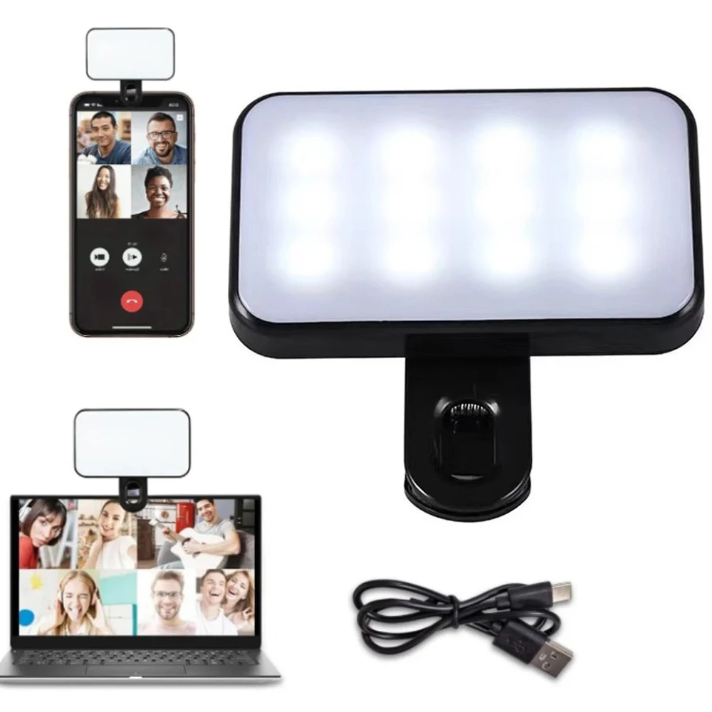 Portable Mini Selfie Fill Light Rechargeable 3 Modes Adjustable Brightness Clip On For Mobile Phone Computer Fill Light