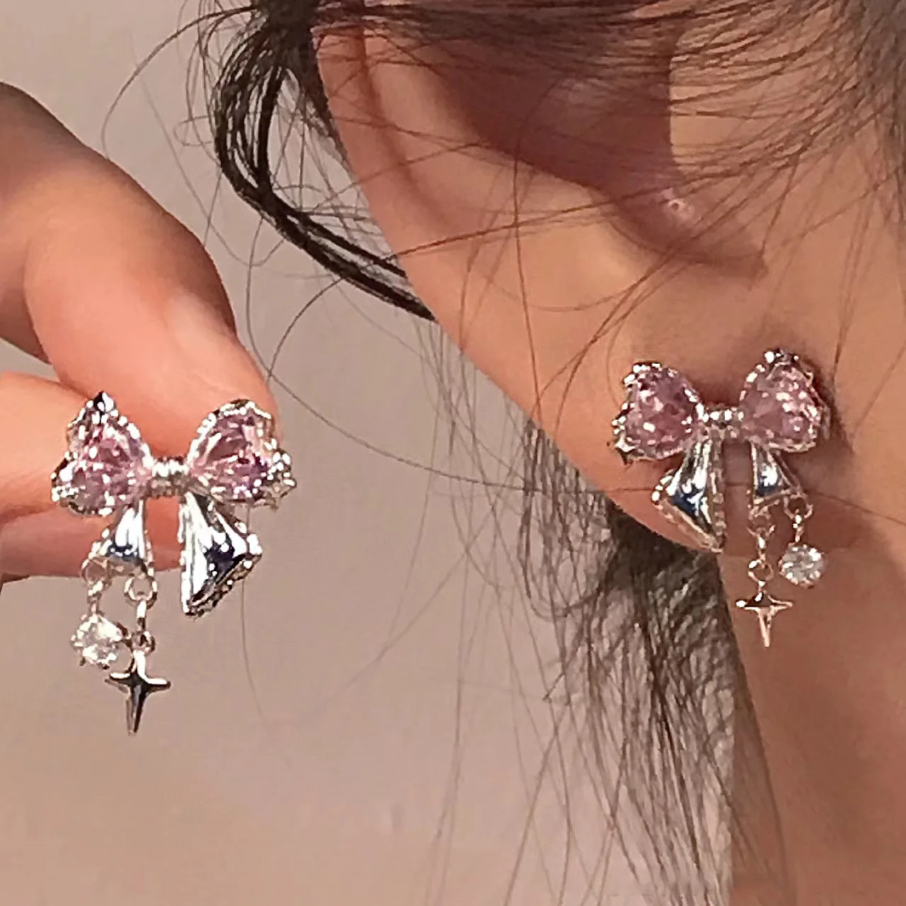 Be the first to review “New Y2K Bowknot Zircon Stud Earrings for Women Fashion Korean Silver Color Pink Crystal Personality Earring Party Jewelry Gifts” Cancel reply