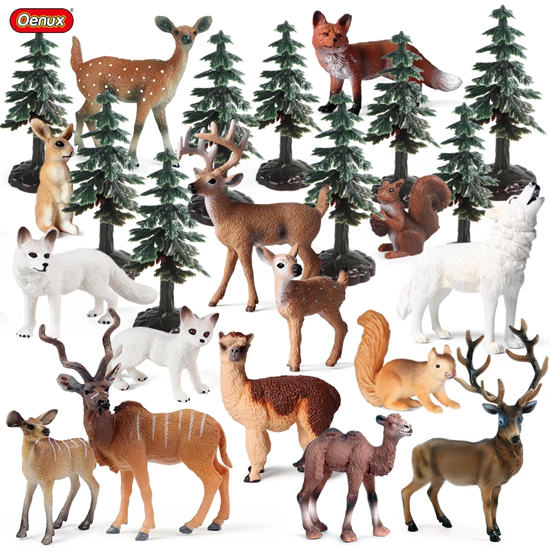 Feature:Â Oenux Mini Christmas Trees Cedar Woodland Animals Cake Toppers Accessory Fox Deer Rabbit Squirrel Antelope Model Decor Kids Toy