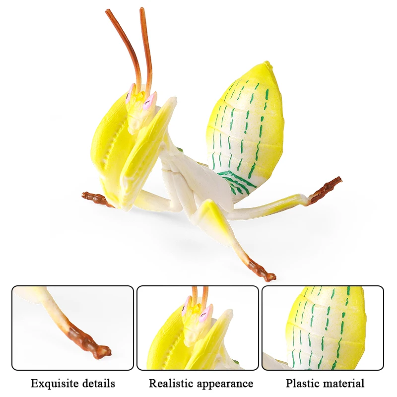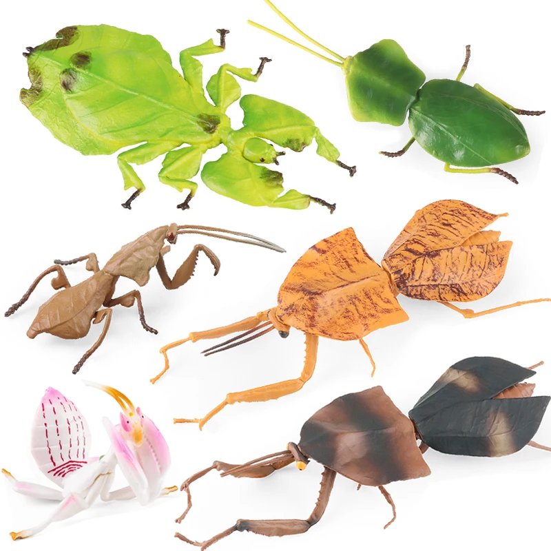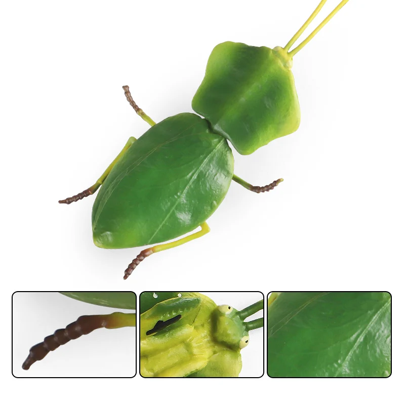 Feature:Oenux Wild Insect Animals Model Mantis Grasshopper Phyllium Giganteum Action Figures PVC Science Education Collection Kid Toy