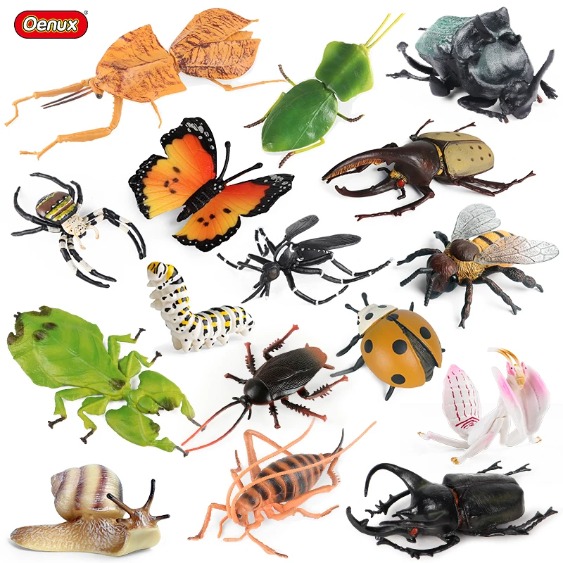 Oenux Wild Insect Animals Model Mantis Grasshopper Butterfly Bee Beetle Action Figures PVC Science Education Collection Kid Toy