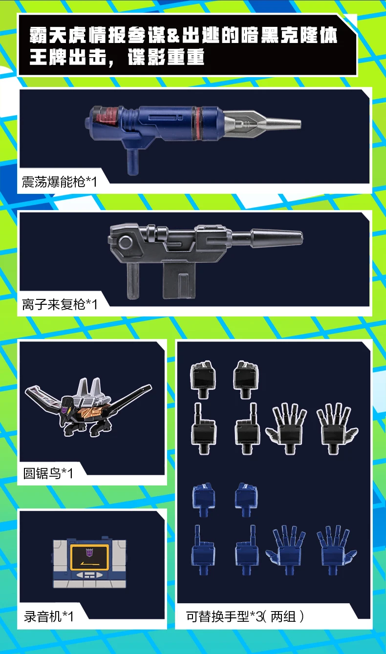 | Color | Micro Spy Set, Optimus Prime, Seekers Elite, SG Soundwave, Starscream |