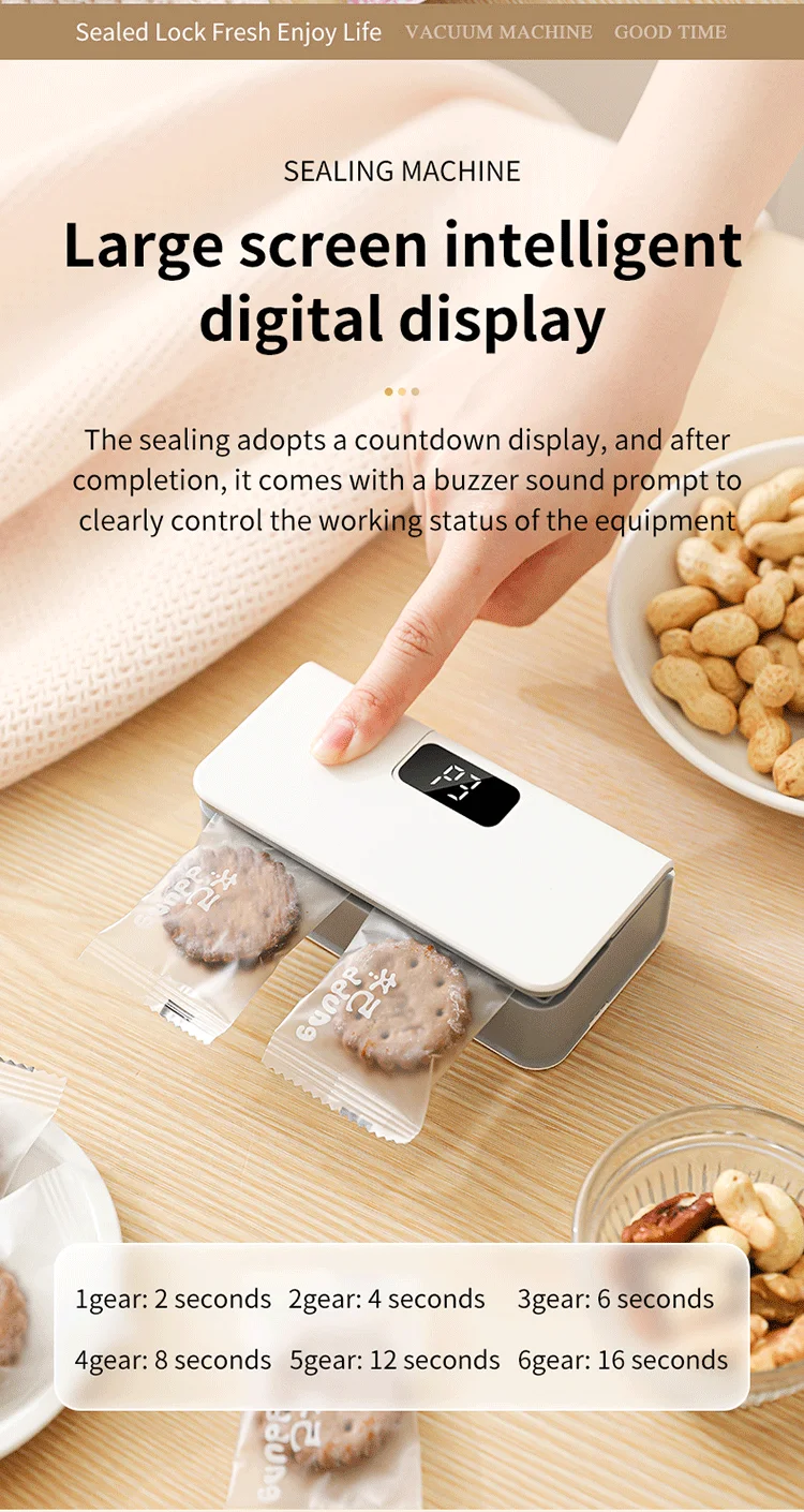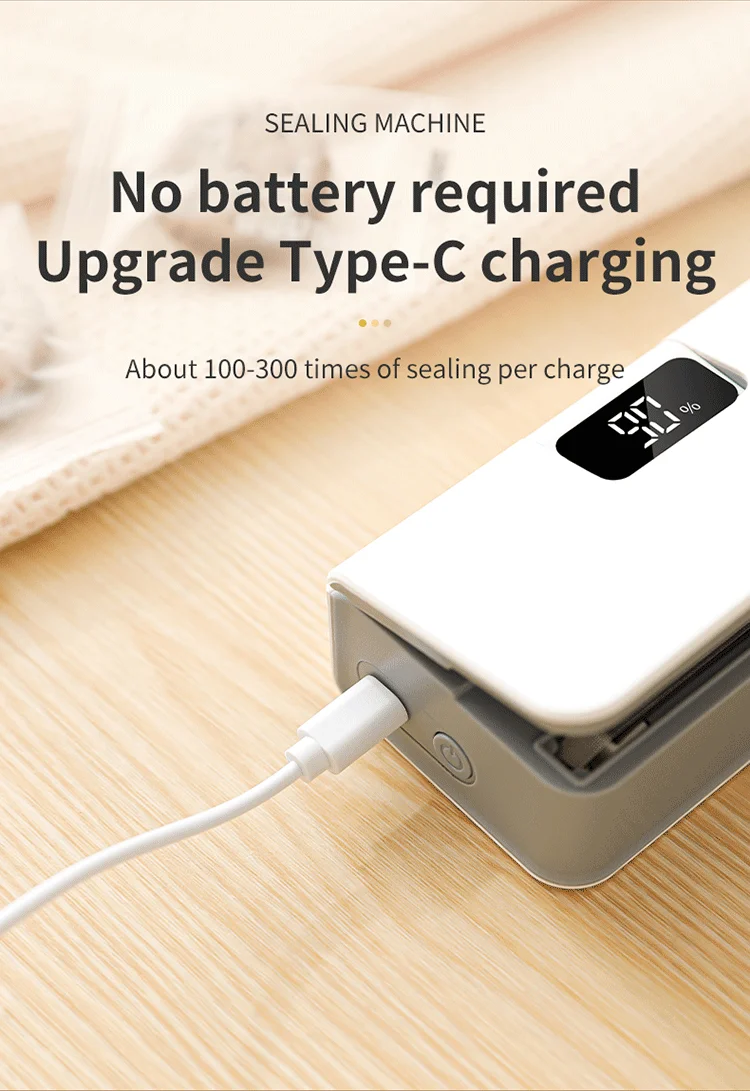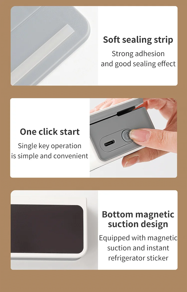 【Rechargeable Battery】With a built-in 1600mAh battery, the sealer provides instant sealing capability without frequent battery changes.Its compact size ensures easy portability.