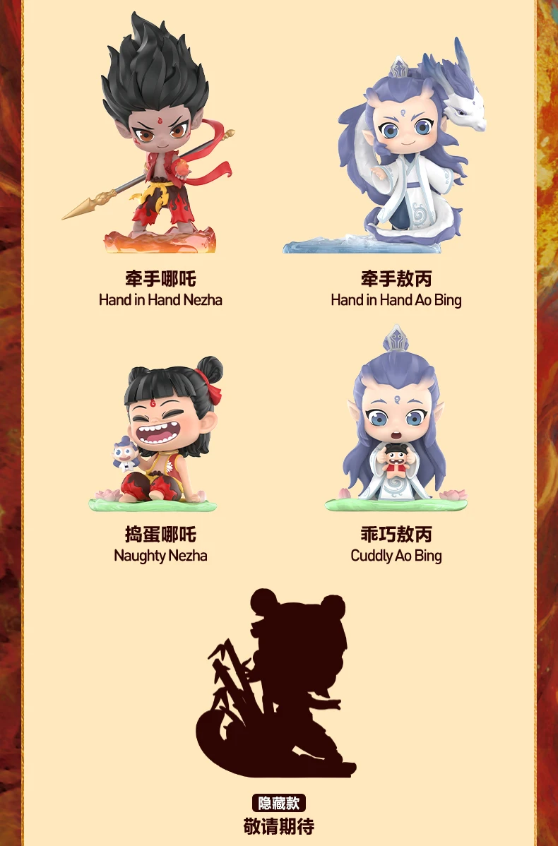 | Color | 1 Blind Box, 8 Blind Boxes, 8 Confirm Styles, Battle-readyAo Bing, Battle-readyNezha, CuddlyAo Bing, Hand in Hand Ao Bing, Hand in Hand Nezha, HIDDEN, Lotus Root Starch A, Lotus Root Starch B, Naughty Nezha |