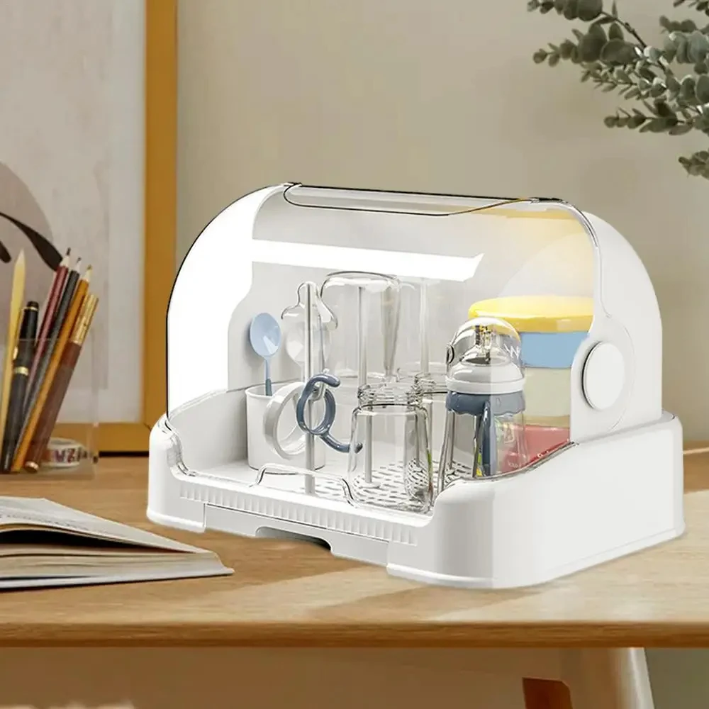 Portable Baby Bottle Drying Rack & Organizer – Dustproof Storage Container with Removable Drip Tray, Hygienic Feeding Accessorie
