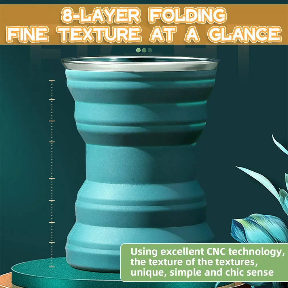 1. High Quality: The collapsible travel cup is made of food grades silicone and guaranteed stainless steel. Easy to clean, non-toxic, non-staining, durable, reusable.