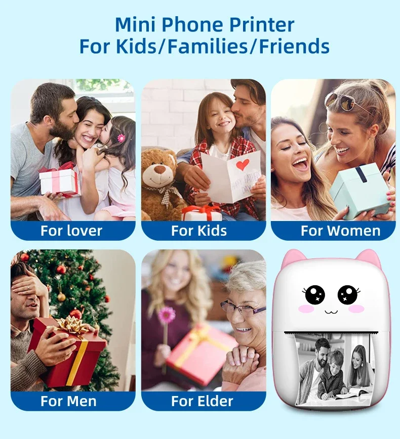 Be the first to review “Portable thermal printer mini cat print photo pocket thermal label printer 58mm printing wireless Bluetooth Android iOS printers” Cancel reply