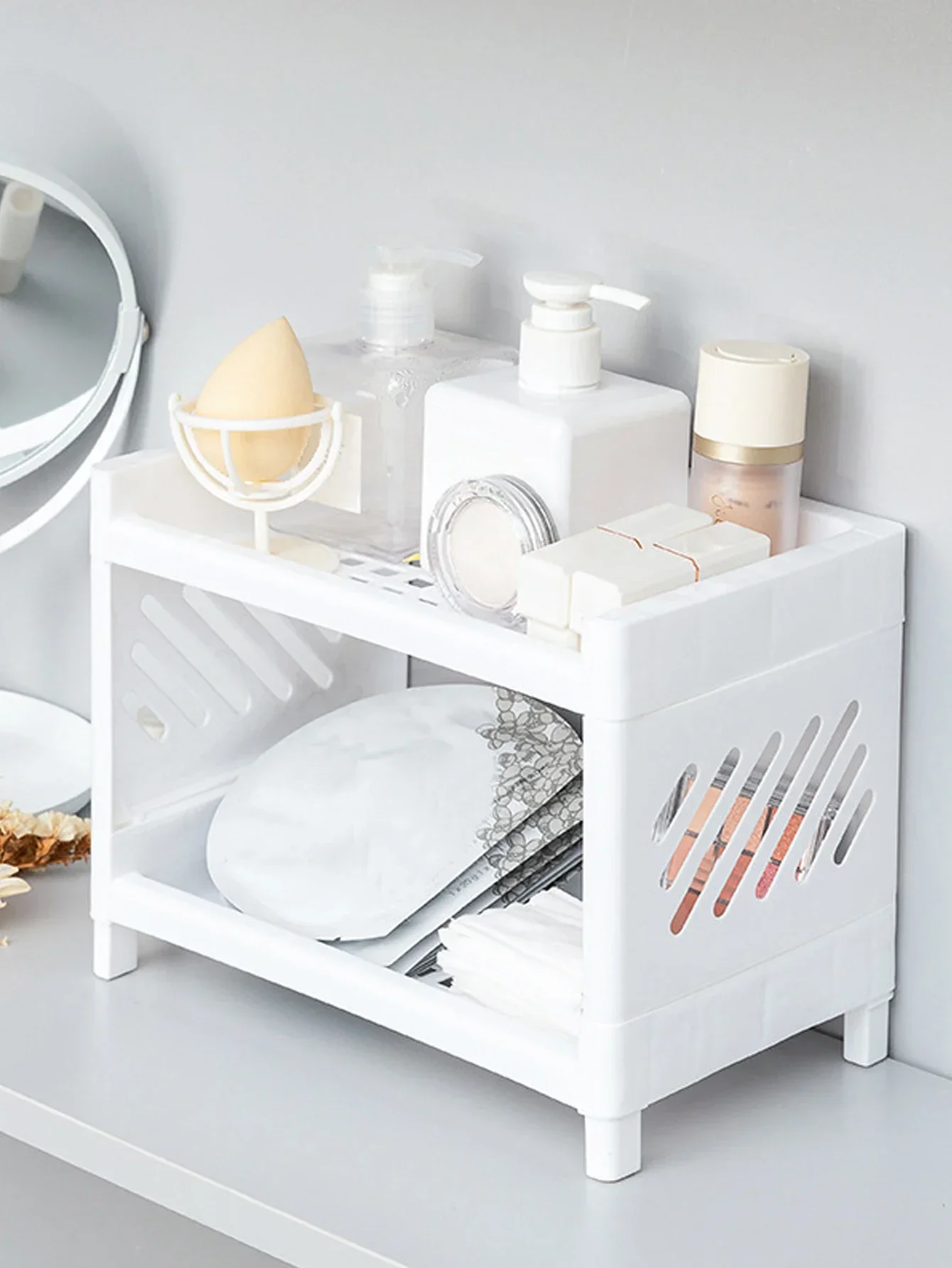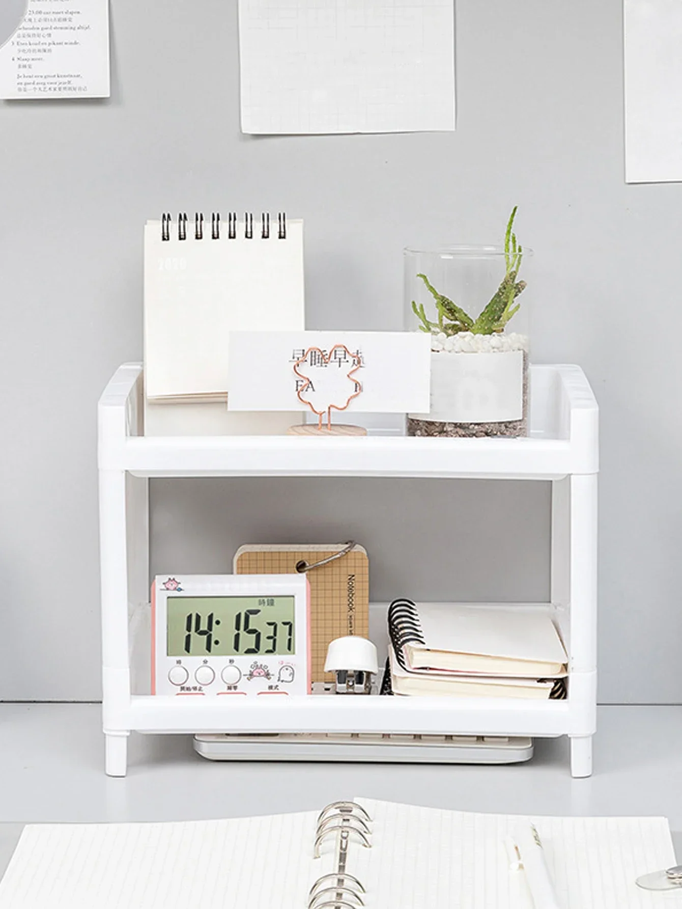 PP Desktop Double Layer Storage Rack Rectangular White Organizing Student Desk Office Cosmetics Stationery Shelf