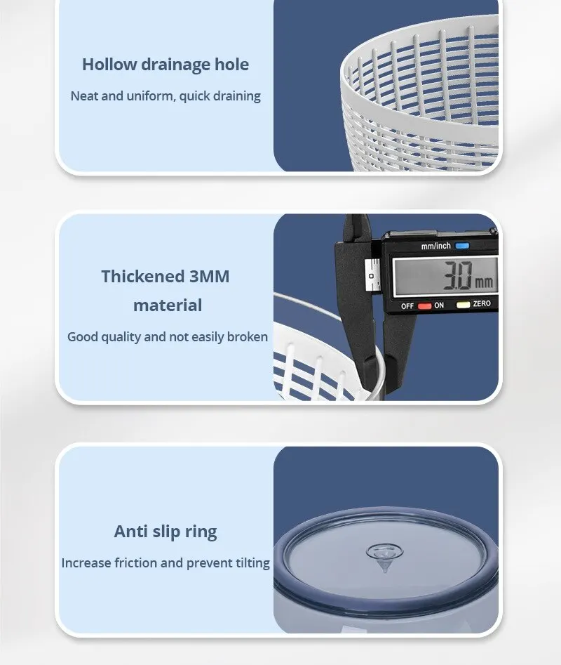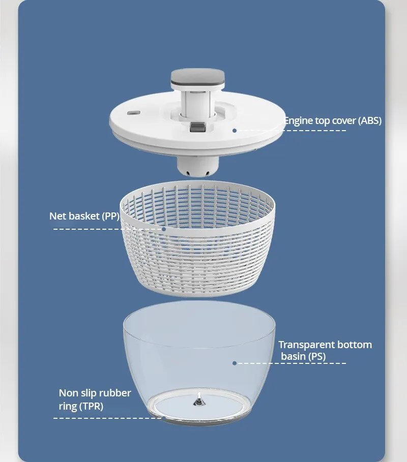 MATERIAL:Our salad spinner ismadeoffood grade plastic material,BPAfree,durable,safe Andre liable.