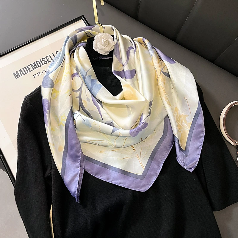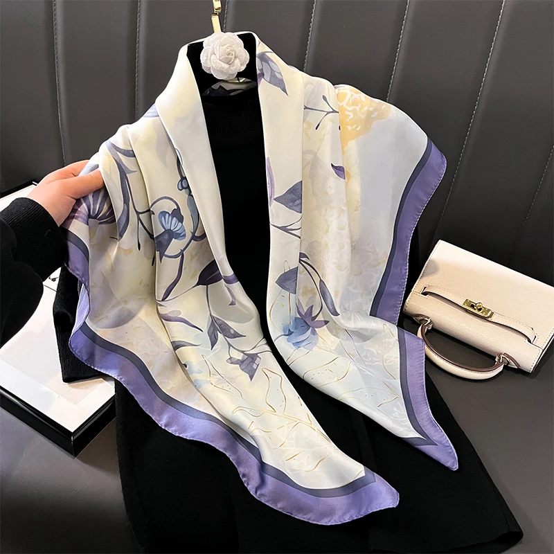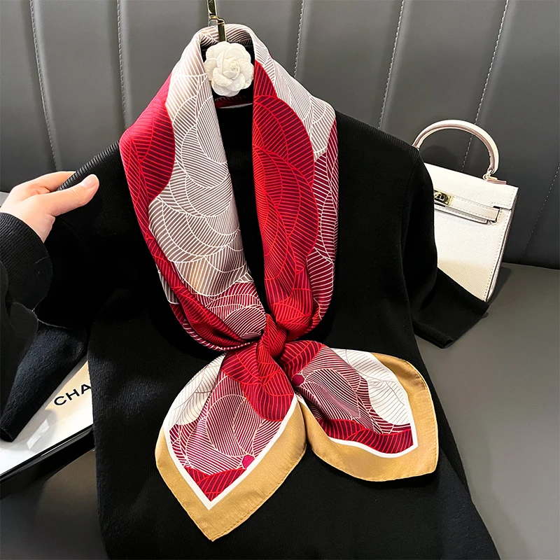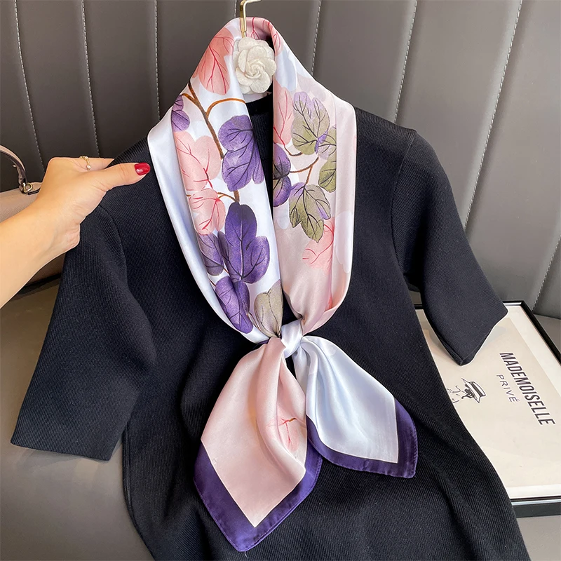 Luxury Brand 2025 Floral Print Square Silk Scarf for Women Hijab Hair Bands 70cm Neckerchief Female Satin Shawl Ribbon Headband