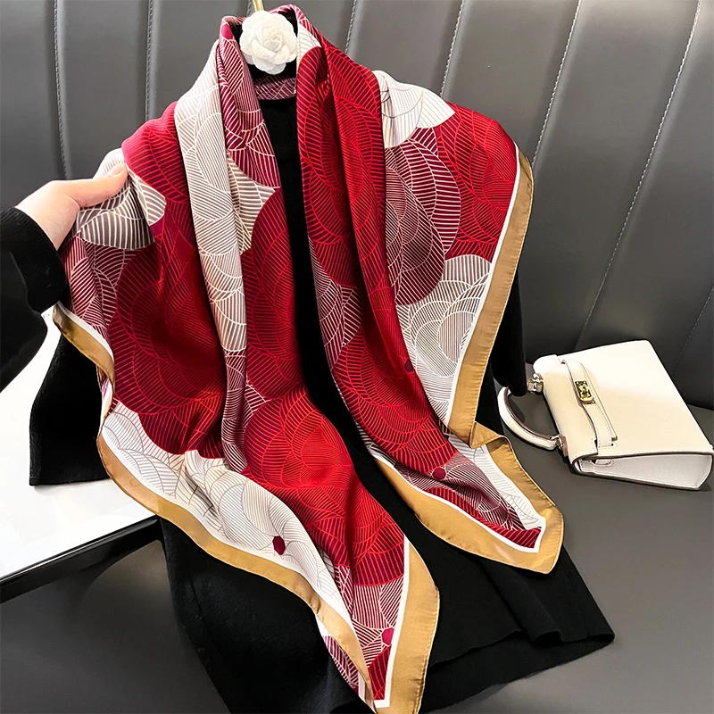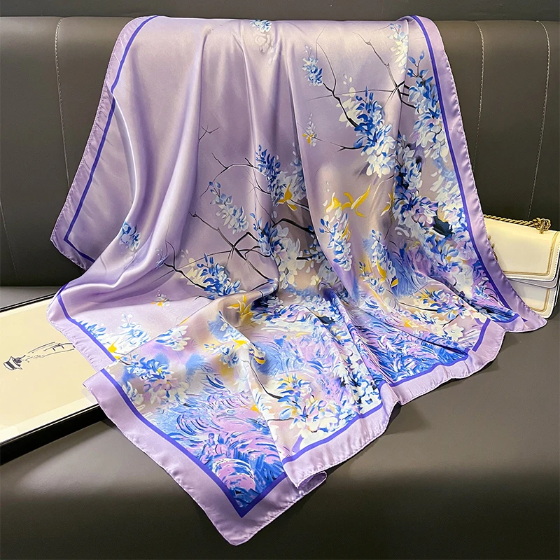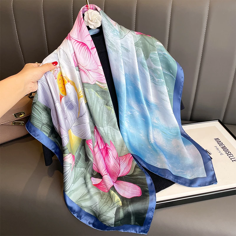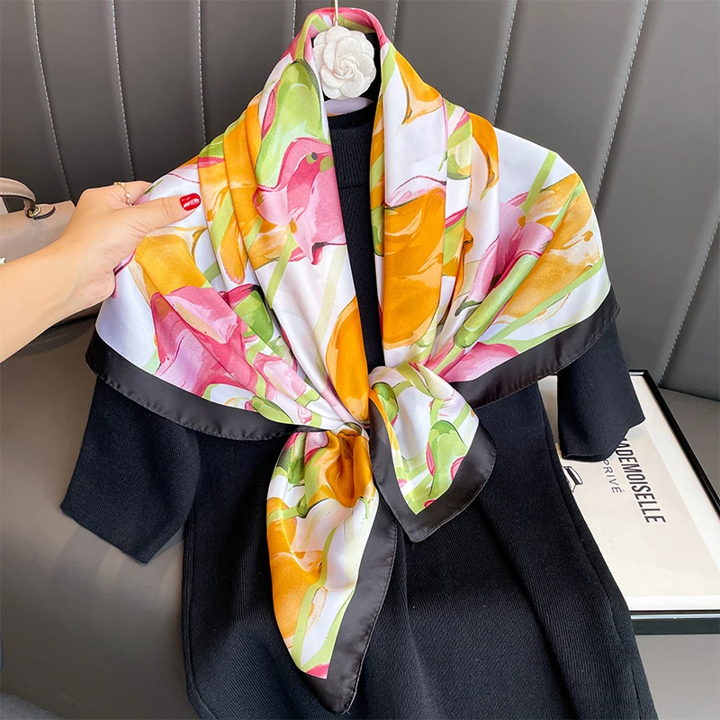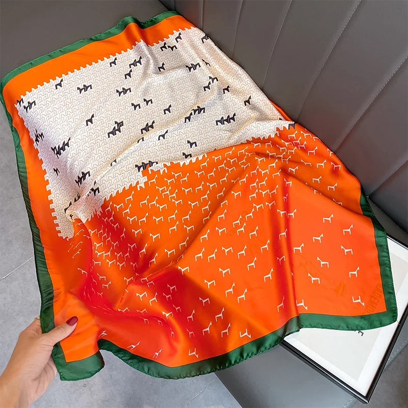 Print Satin Silk Square Scarf Hijab Women Bandana 90CM Headscarves Neckerchief Ladies Muffler Shawl Wrap Foulard Headband
