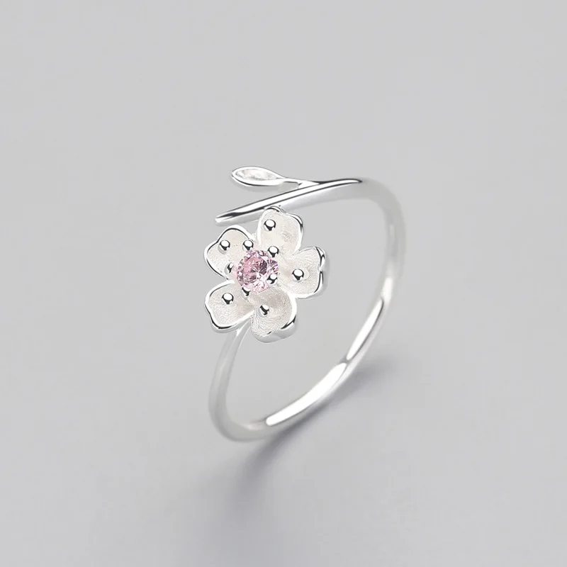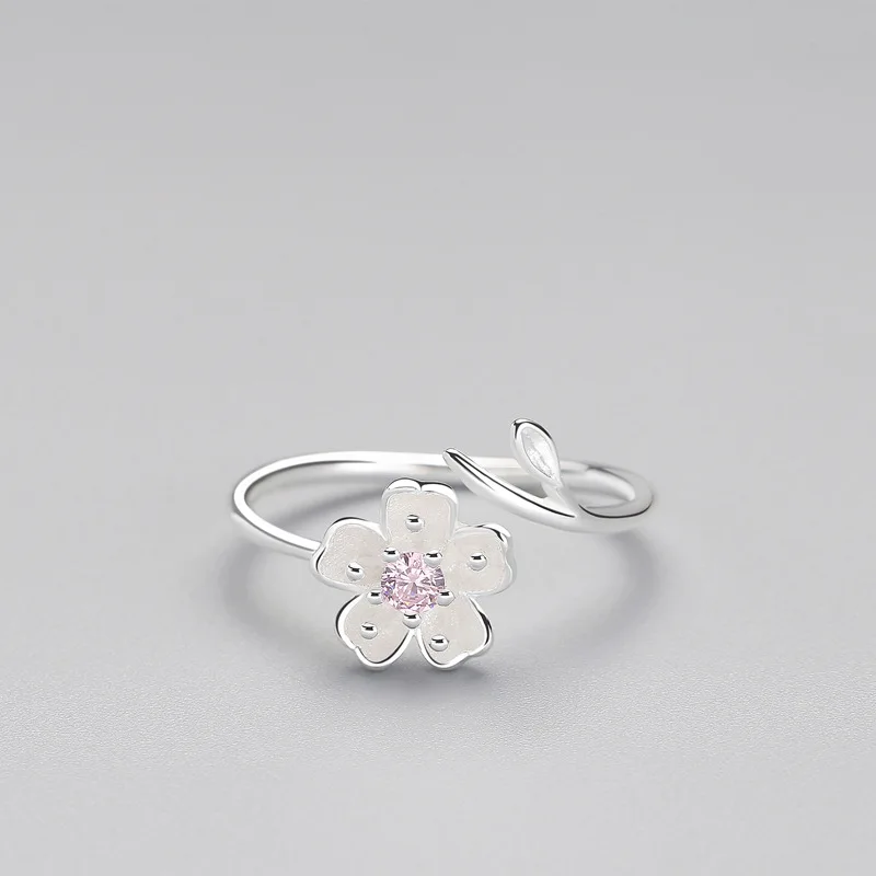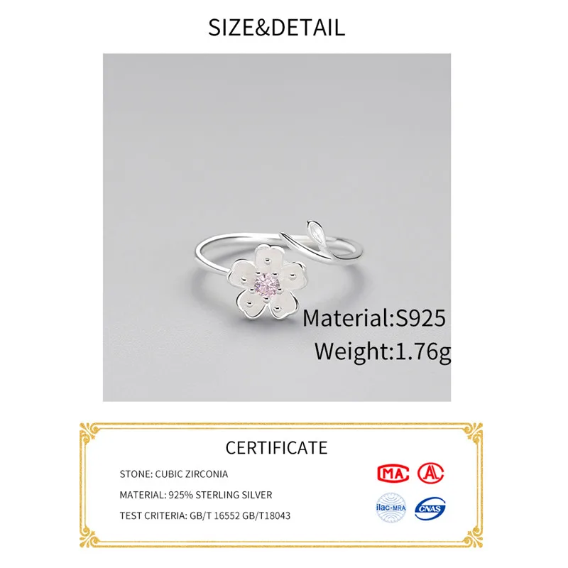 Real 925 Sterling Silver Zircon Enamel Plum Flower Adjustable Ring Elegant Fine Jewelry For Women Romantic Party Bijoux