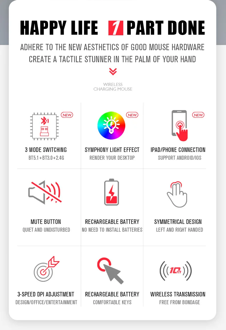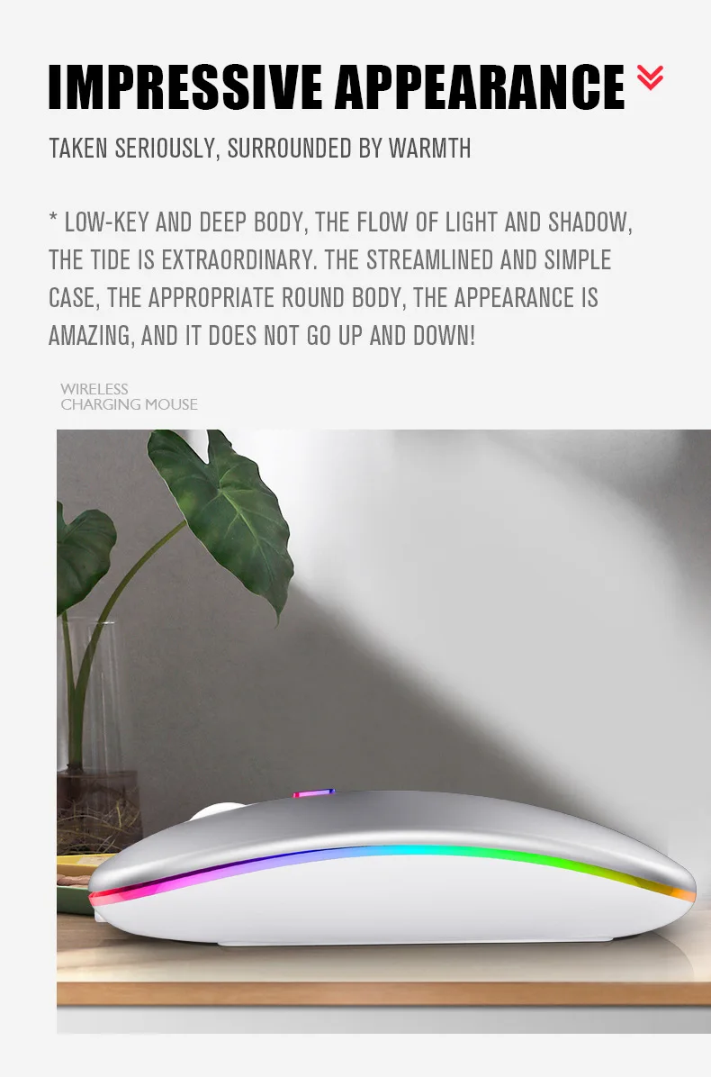 Wireless Mouse Rechargeable Silent LED Backlit Mice PC Laptop Computer Mous 2.4Ghz Receiver Bluetooth Dual Mode Optical Mice
