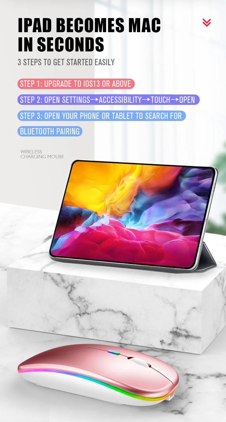 Rechargeable Bluetooth Wireless Mouse with 2.4GHz USB RGB 1600DPI Mouse for Computer Laptop Tablet PC Macbook Gaming Mouse Gamer