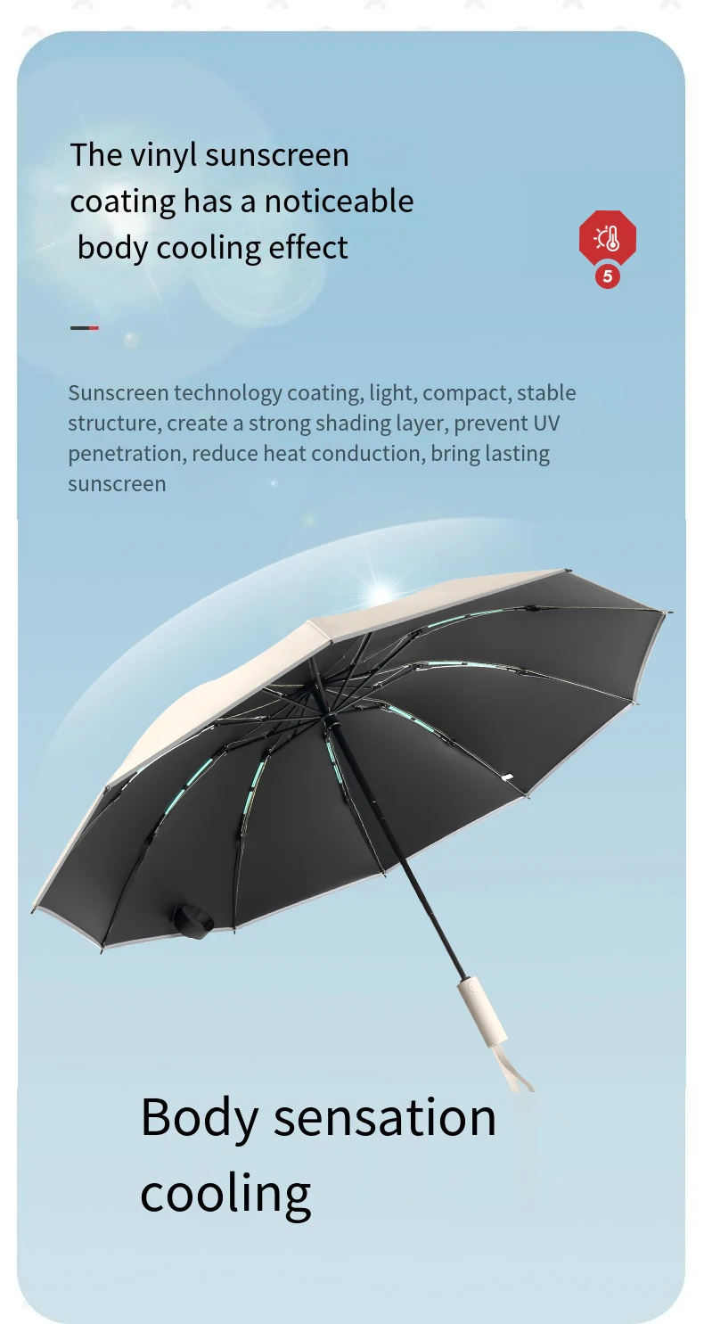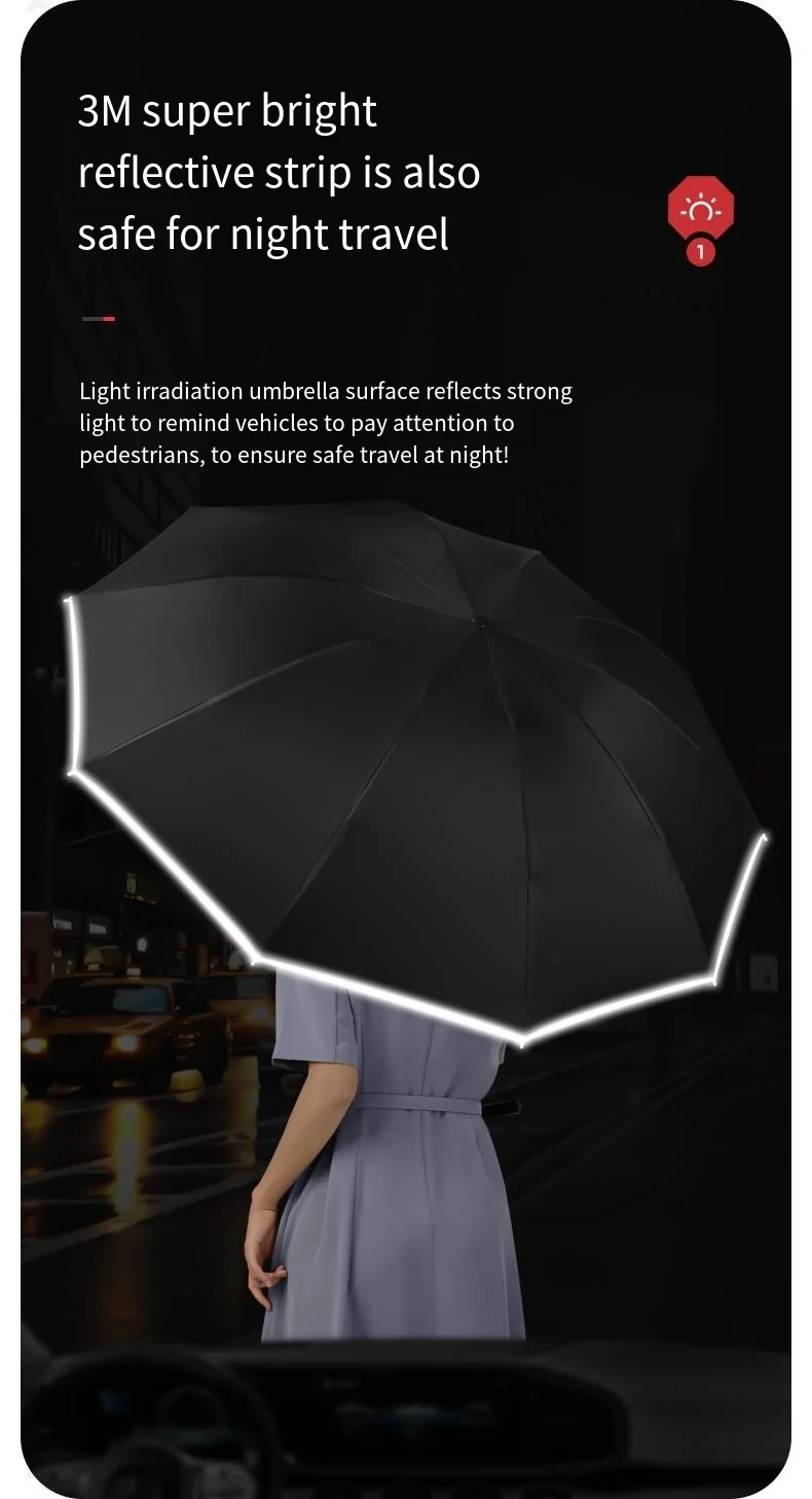 Reflective Umbrellas Reverse Three Fold 20 Bone Black Glue Automatic Sunshade Sunscreen Rain Umbrella Strong Wind Resistance