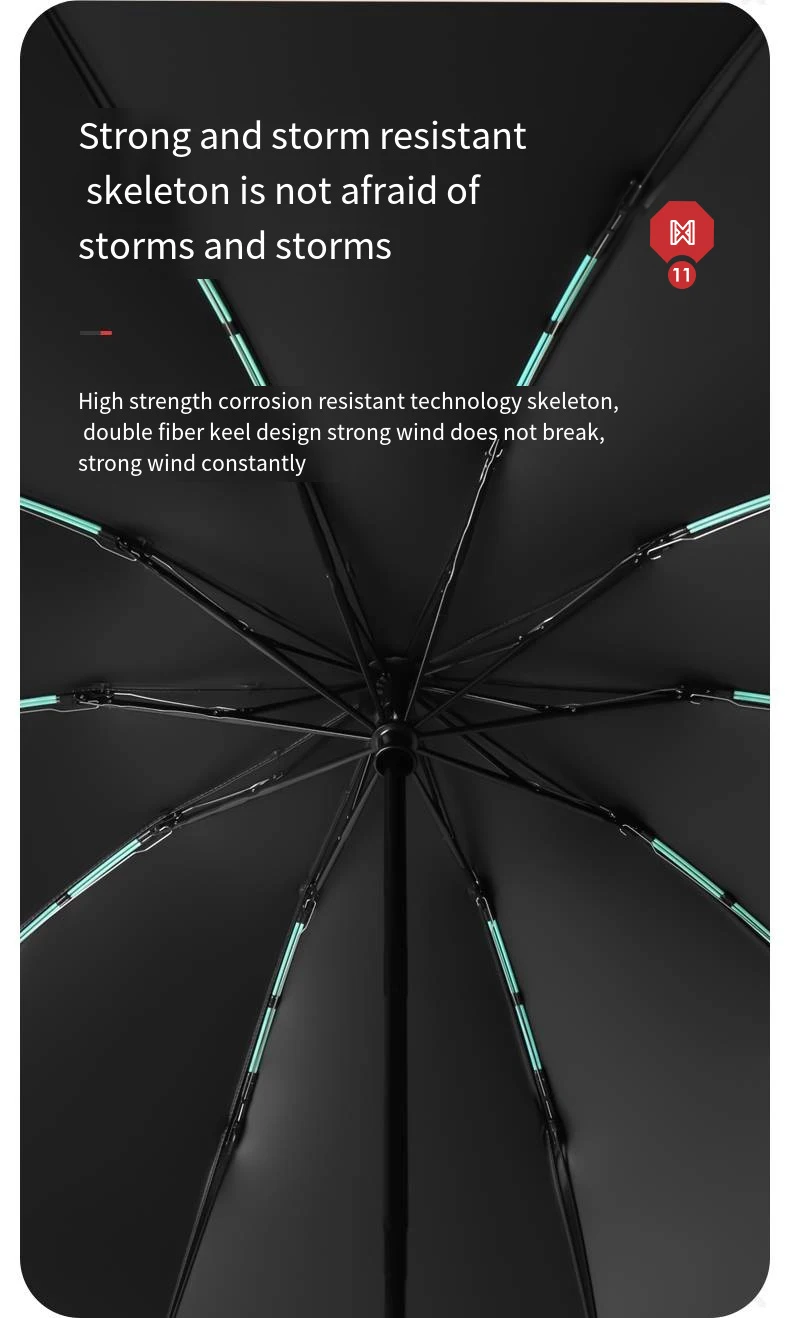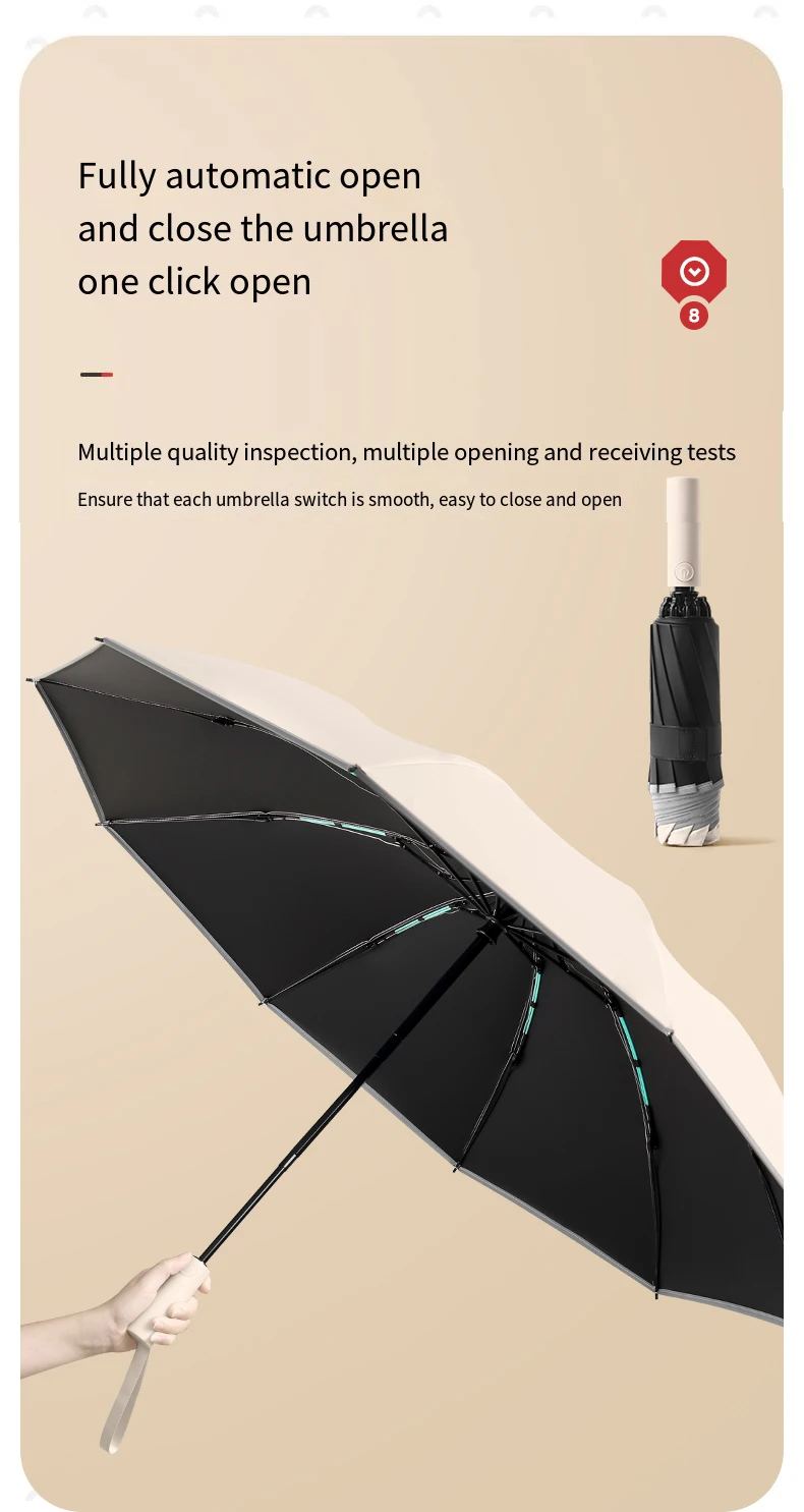 7 reviews for Reflective Umbrellas Reverse Three Fold 20 Bone Black Glue Automatic Sunshade Sunscreen Rain Umbrella Strong Wind Resistance
