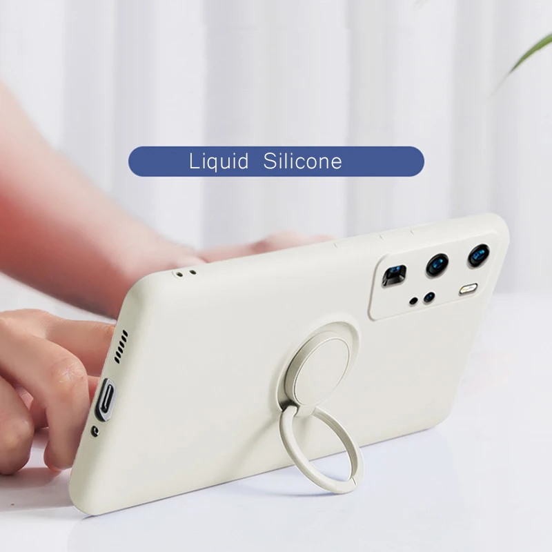 Magnetic Ring Holder Stand Case For Samsung Galaxy S21 Ultra S 21 Plus Note 20 S20 FE S10 A51 A71 A50 Liquid Silicone Soft Cover