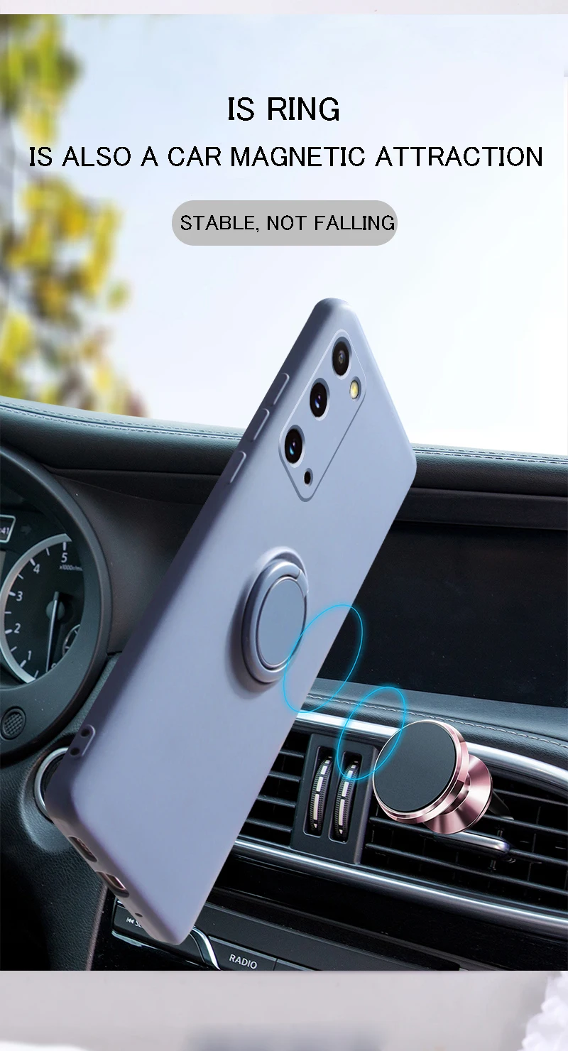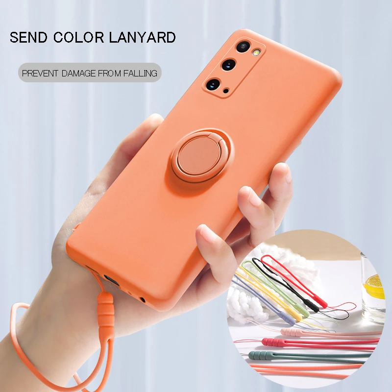 Ring Holder Magnetic Case For Samsung Galaxy S21 Ultra S20 FE S10 Plus Note 20 S 21 A51 A71 A50 Soft Liquid Silicone Stand Cover
