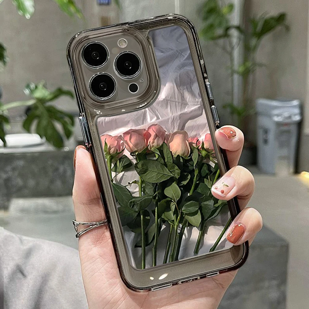 Rose Flower Phone Case For iPhone 16 Pro Case iPhone 17 11 13 15 12 14 Pro Max 16E XR XS 7 8 Plus SE Soft Shockproof Clear Cover