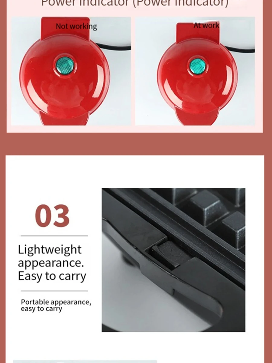 1. Efficient and simple: Just pour in the batter, heat it on both sides at 350W, bake evenly, and the machine will complete the production in a very short time.