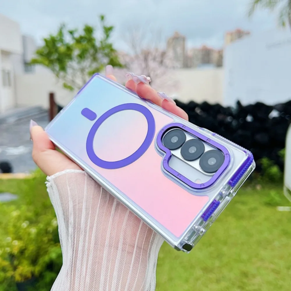 Senior Discolour Metal Lens MagSafe Magnetic Shockproof Phone Cases For Samsung Galaxy Z Fold 6 Z Fold 7 Wireless Charging Cover