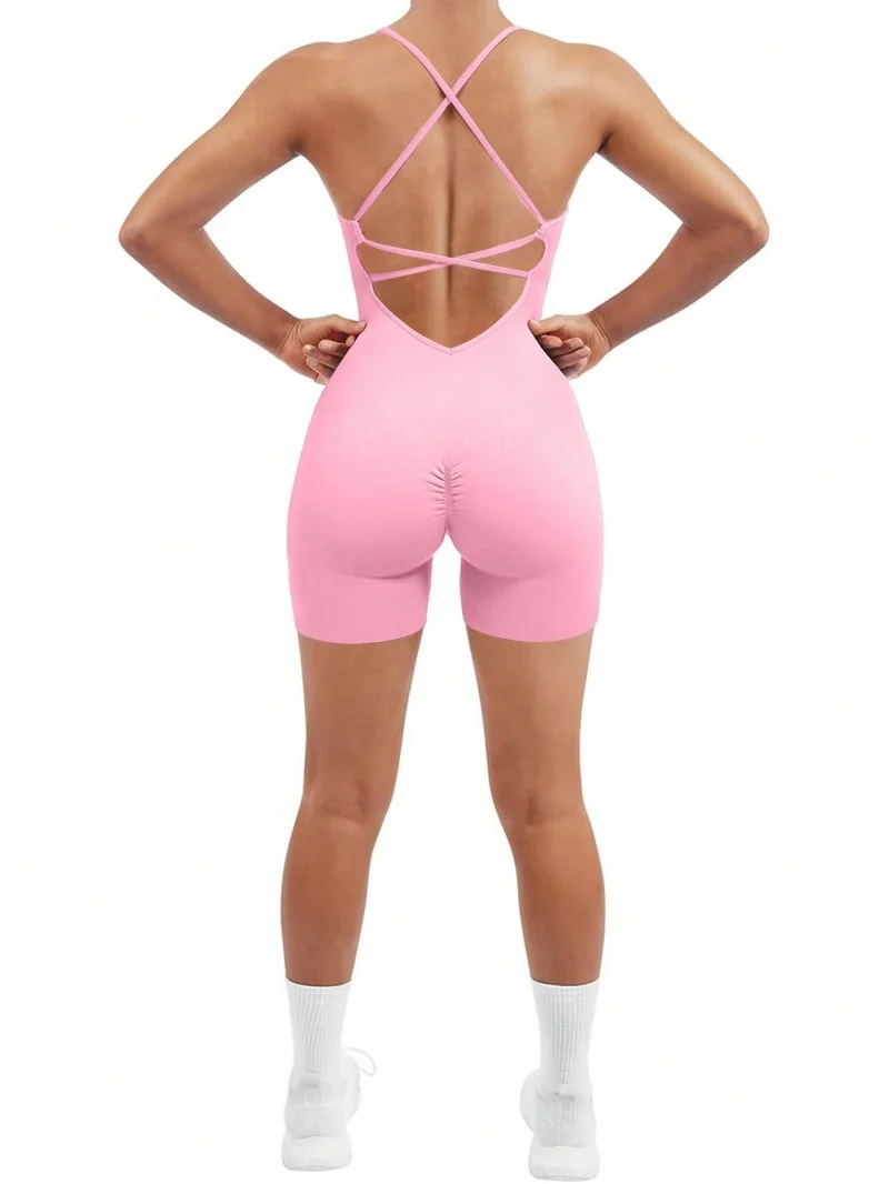 Sexy Fitness Jumpsuit Women Cross Adjustable Sports Playsuit Running One Piece Yoga Suit Scrunch Shorts Backless Set Romper