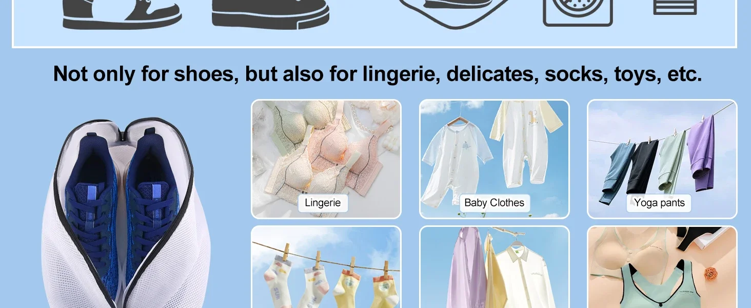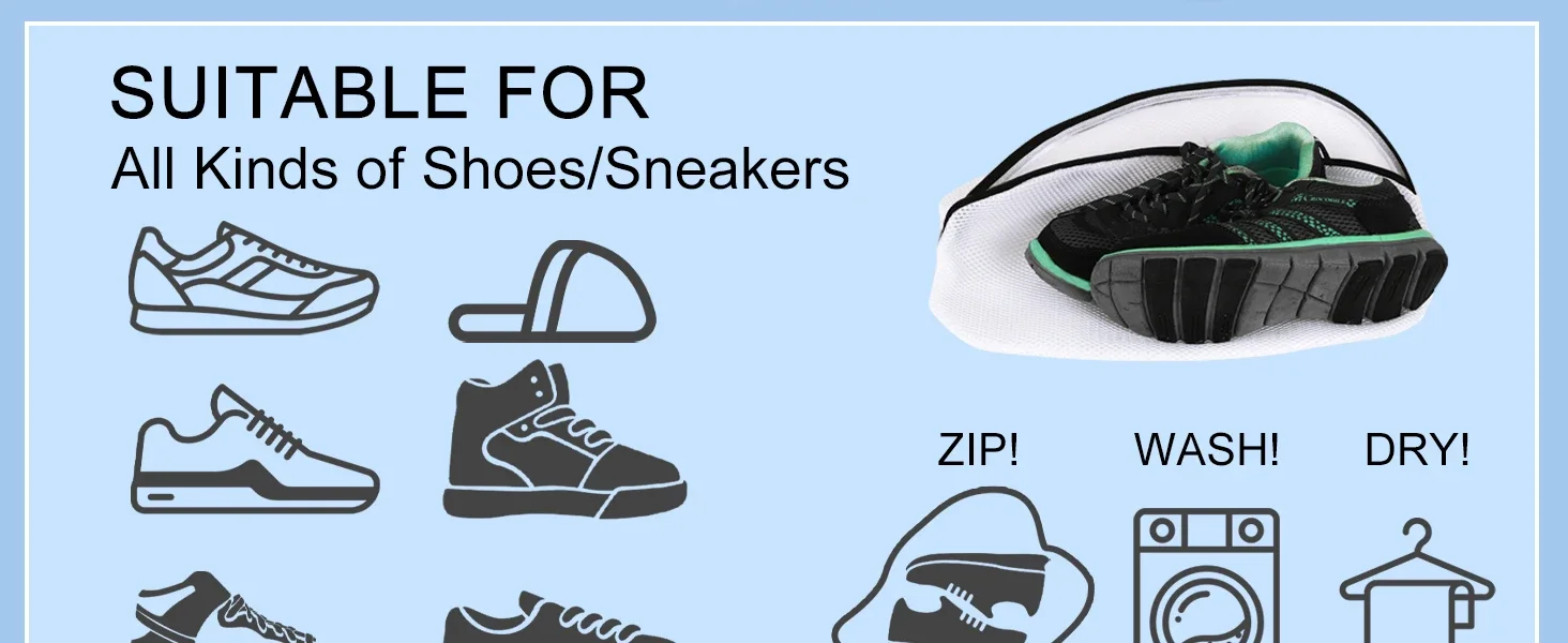 DURABLE & BREATHABLE MATERIAL – Our shoe washing machine bags are made by high quality polyester with two layers of mesh. Strong zipper closure can keep your delicates securely while machine washing