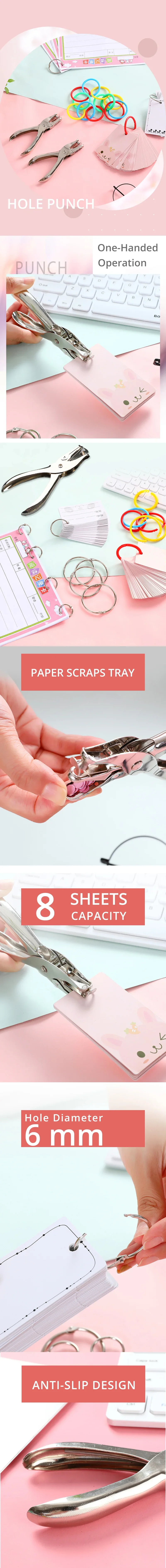 Single Hole Punch 8 Sheet Capacity 6mm Diameter Hole Puncher Hand Paper Scrapbooking Punches for Home Office School Supplies
