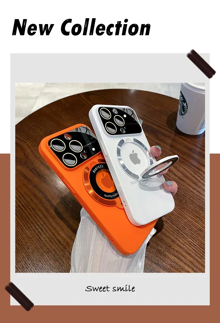 Be the first to review “Slim Matte PC Bracket Case For iPhone 15 14 13 12 11 Pro Max 14 Plus For Magsafe Stand Holder Glass Lens Protector Luxury Cover” Cancel reply
