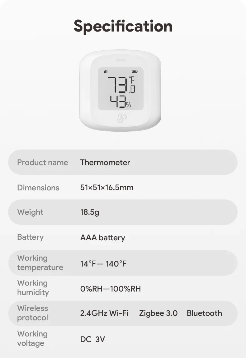 Smart WiFi/Zigbee Temperature and Humidity Sensor Indoor Hygrometer Thermometer with LCD Display Support Alexa Google Home