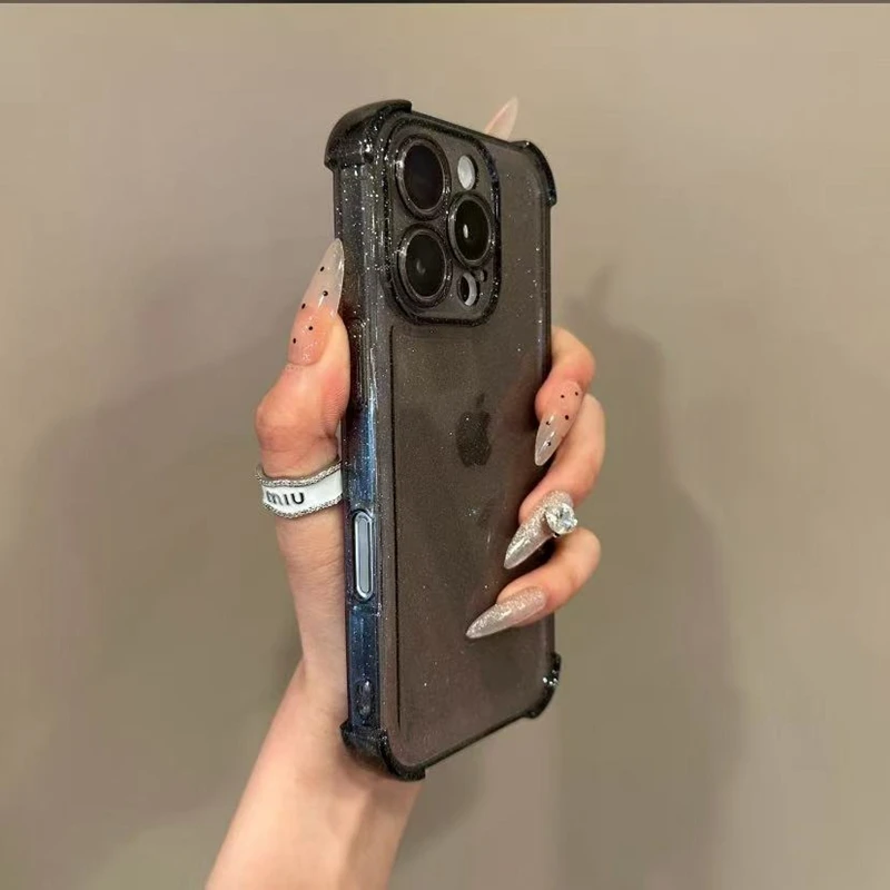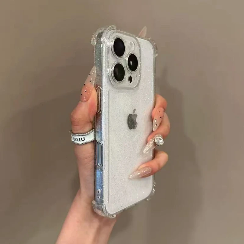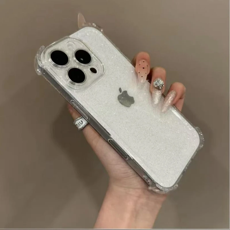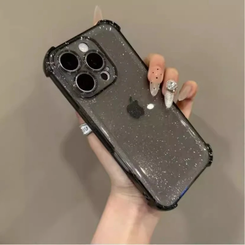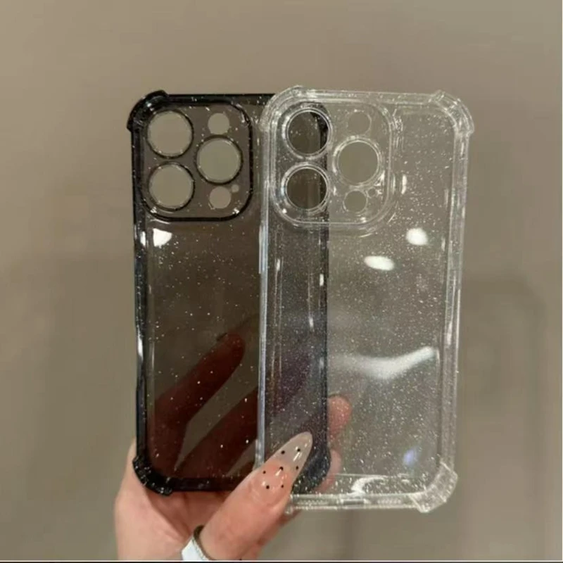 Soft Transparent Phone Case For iPhone 11 12 13 14 15 16 Pro Max Plus 16E Xs Max XR Glitter Silicone Shockproof Bumper Cover