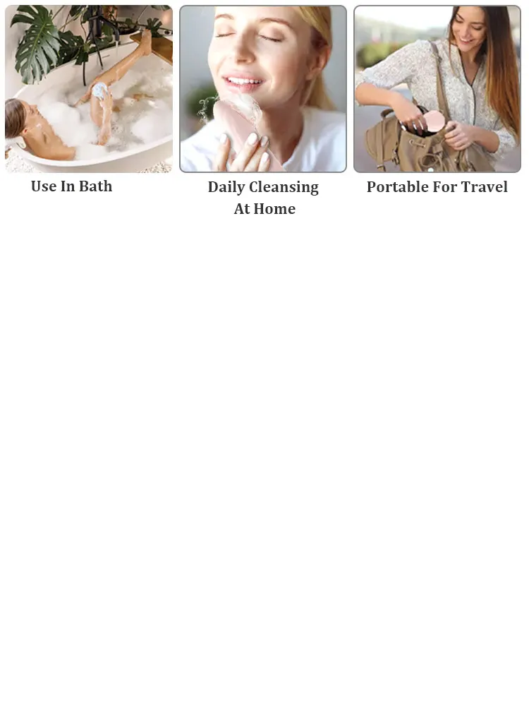 Dampen your face and apply your favorite cleanser to your electric face cleaning brush. Wet sonic facial brush and turn it on. Glide facial scrub brush in circular motions over your face for 1 and half minutes. After that, rinse rechargeable face cleansing brush, pat-dry your face, reverse and massage wrinkle-prone areas for another 1 and half minutes