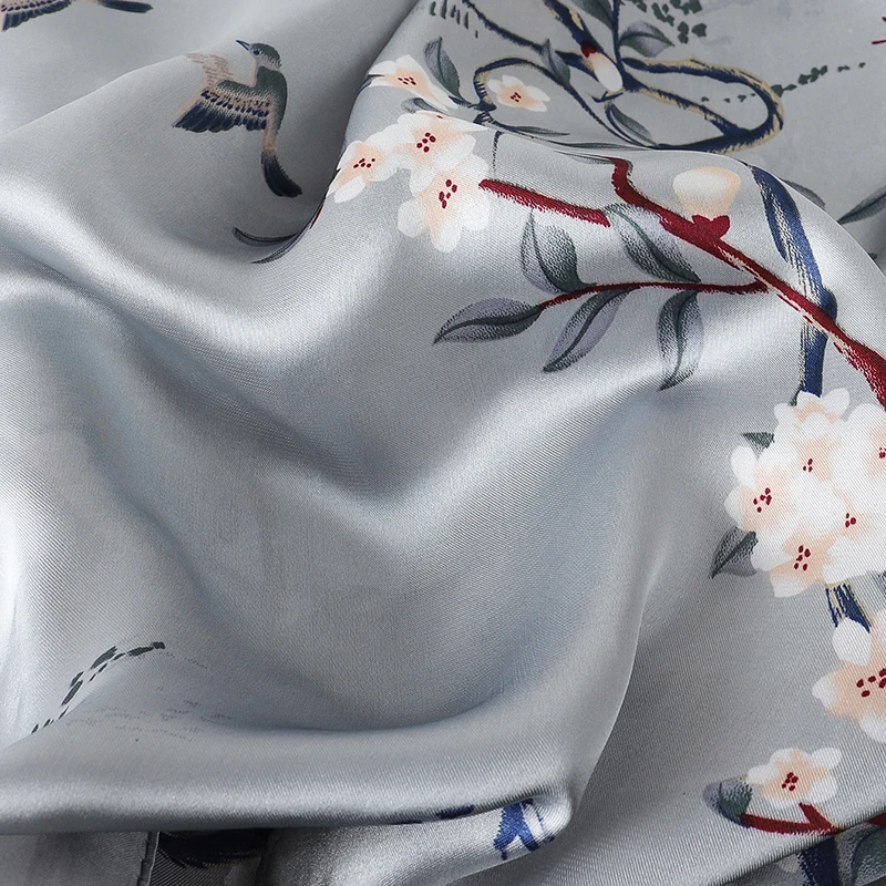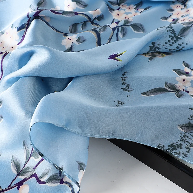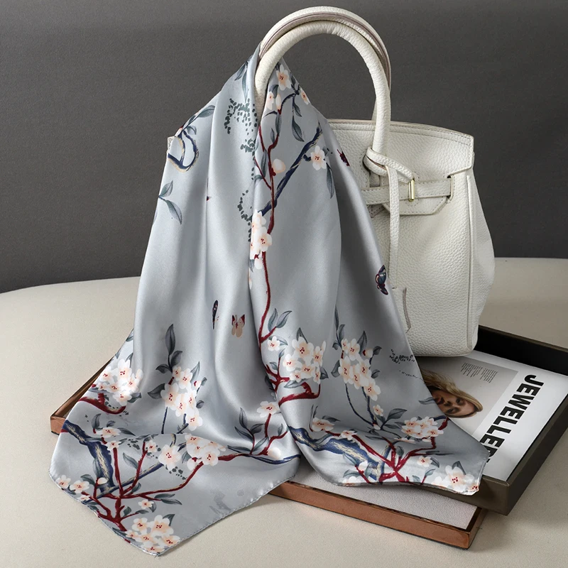 2024 Silk Scarves Women Luxury Brand Hijab Scarf Floral Foulard Femme Shawls Wraps Silk Bandana Head Scarf Hijab Beach Poncho