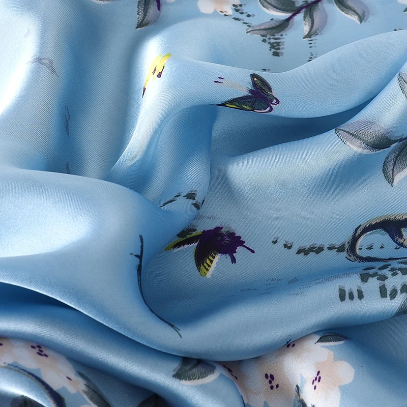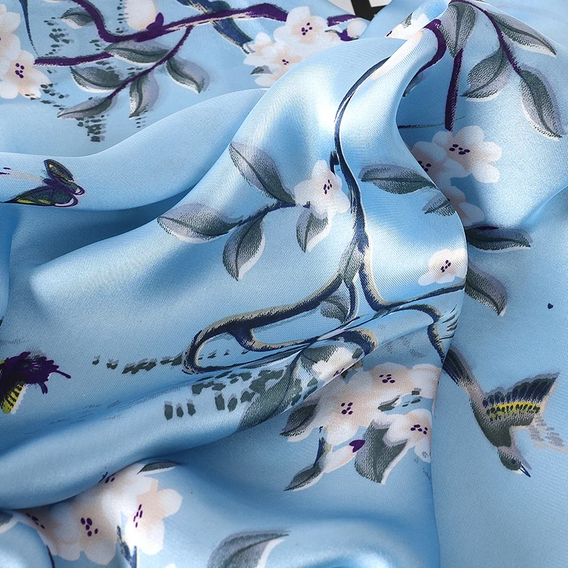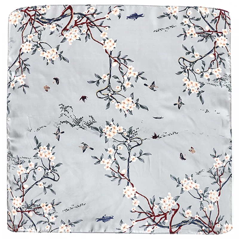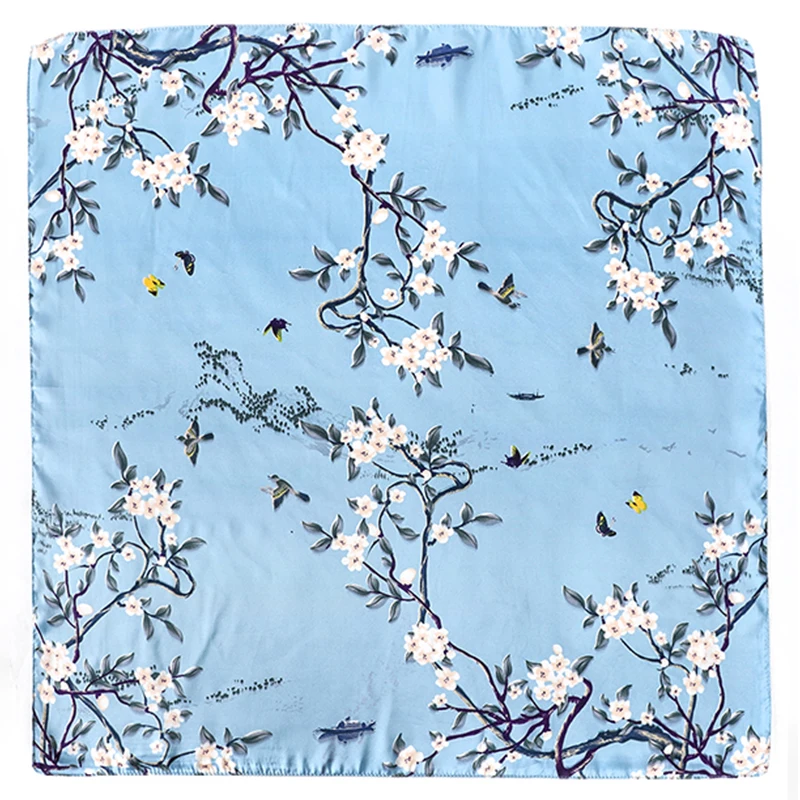 Designer Floral Square 65cm Neckerchief Women Real Silk Scarf Luxury Cotton Shawl 2025 Print Female Hijab Bandana Headband