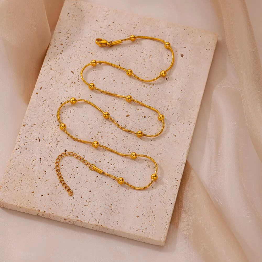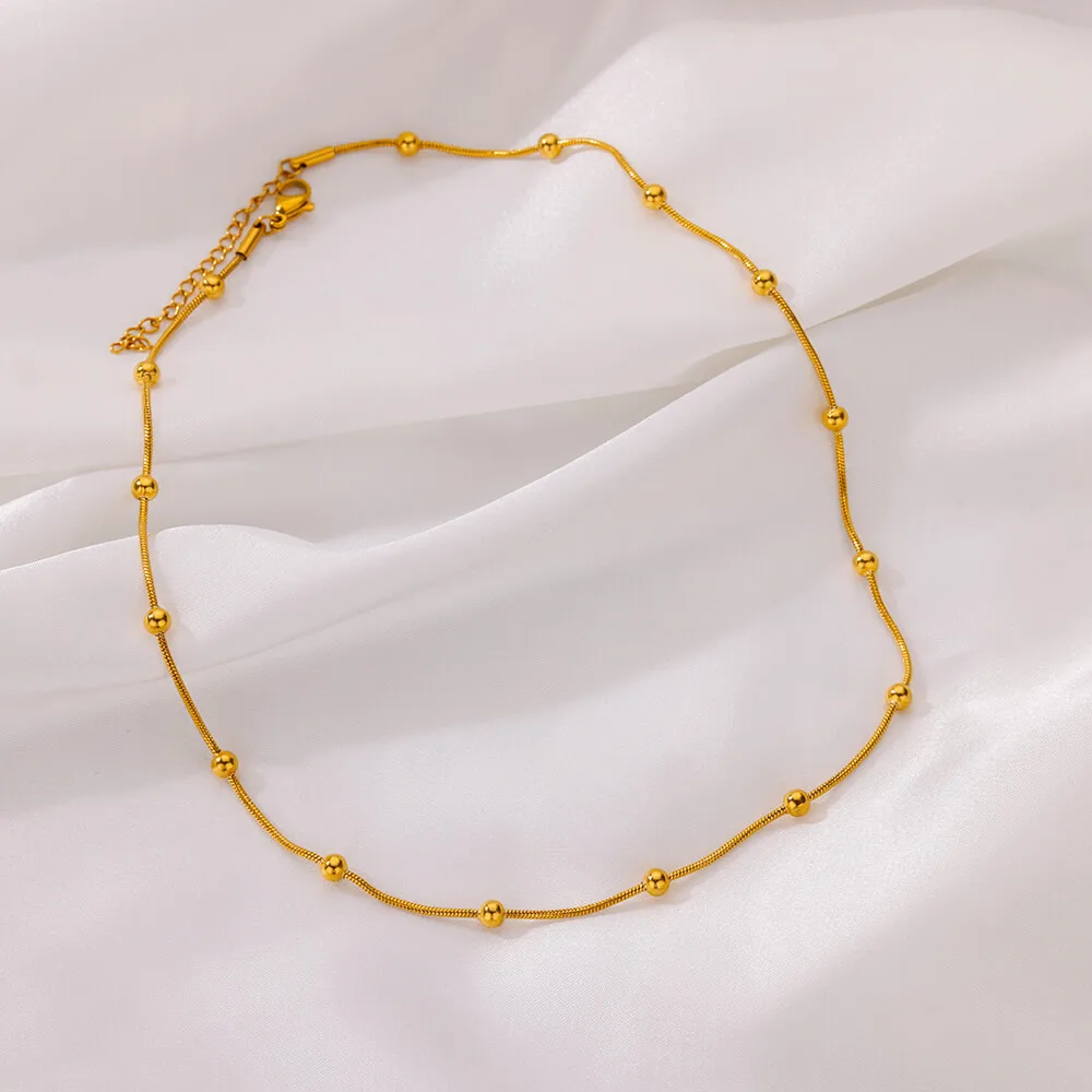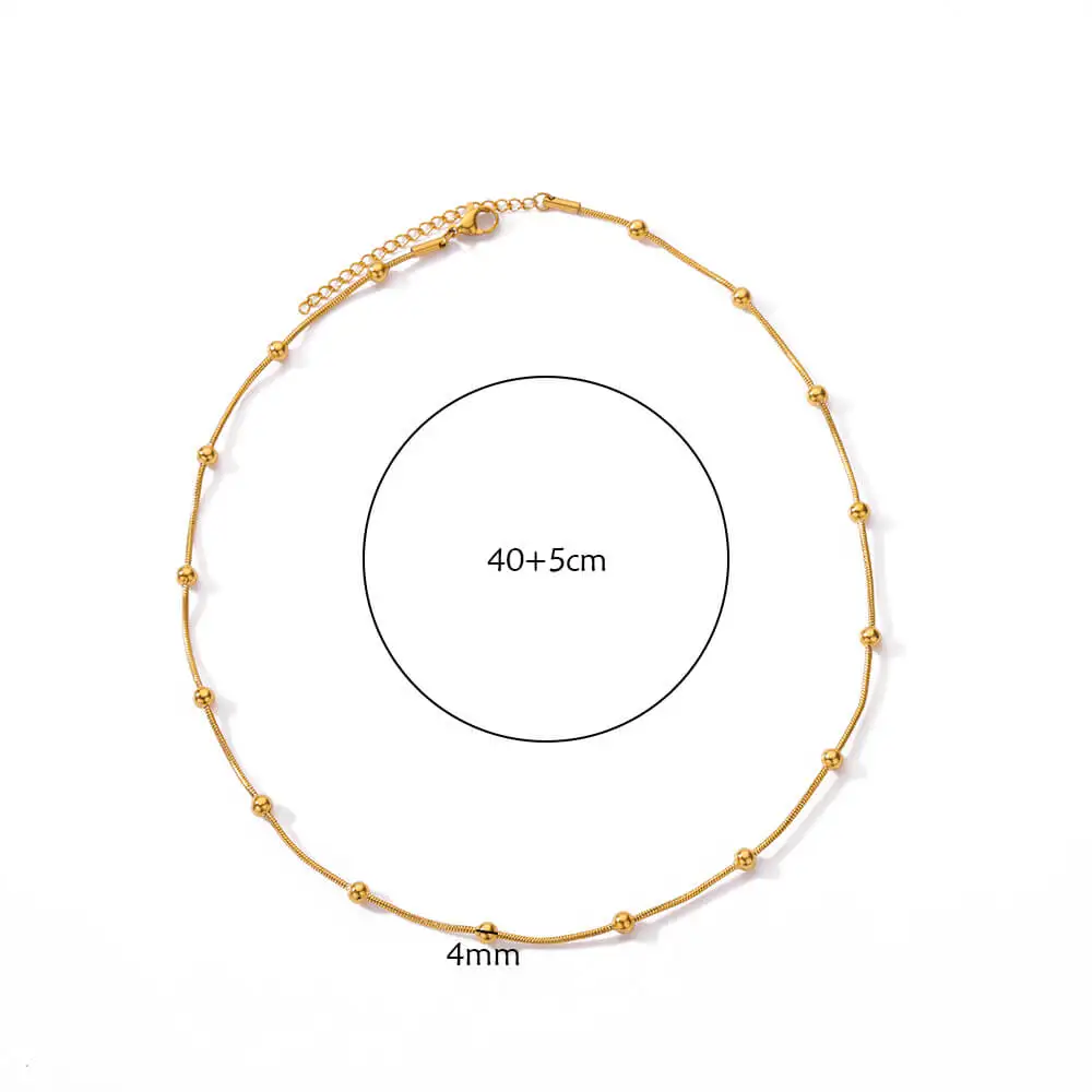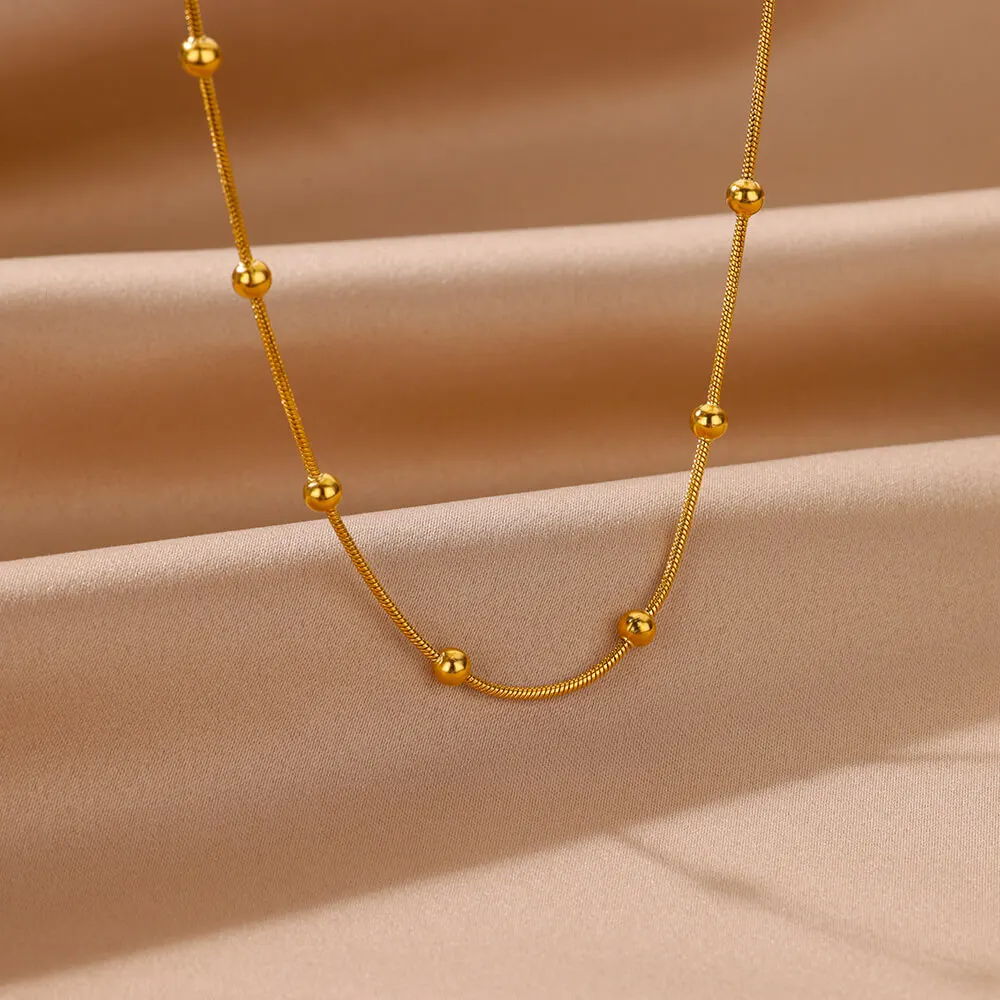 Stainless Steel Beaded Round Snake Chain Necklaces For Women Gold Color Geometric Necklace Luxury Wedding Party Jewelry Gift BFF