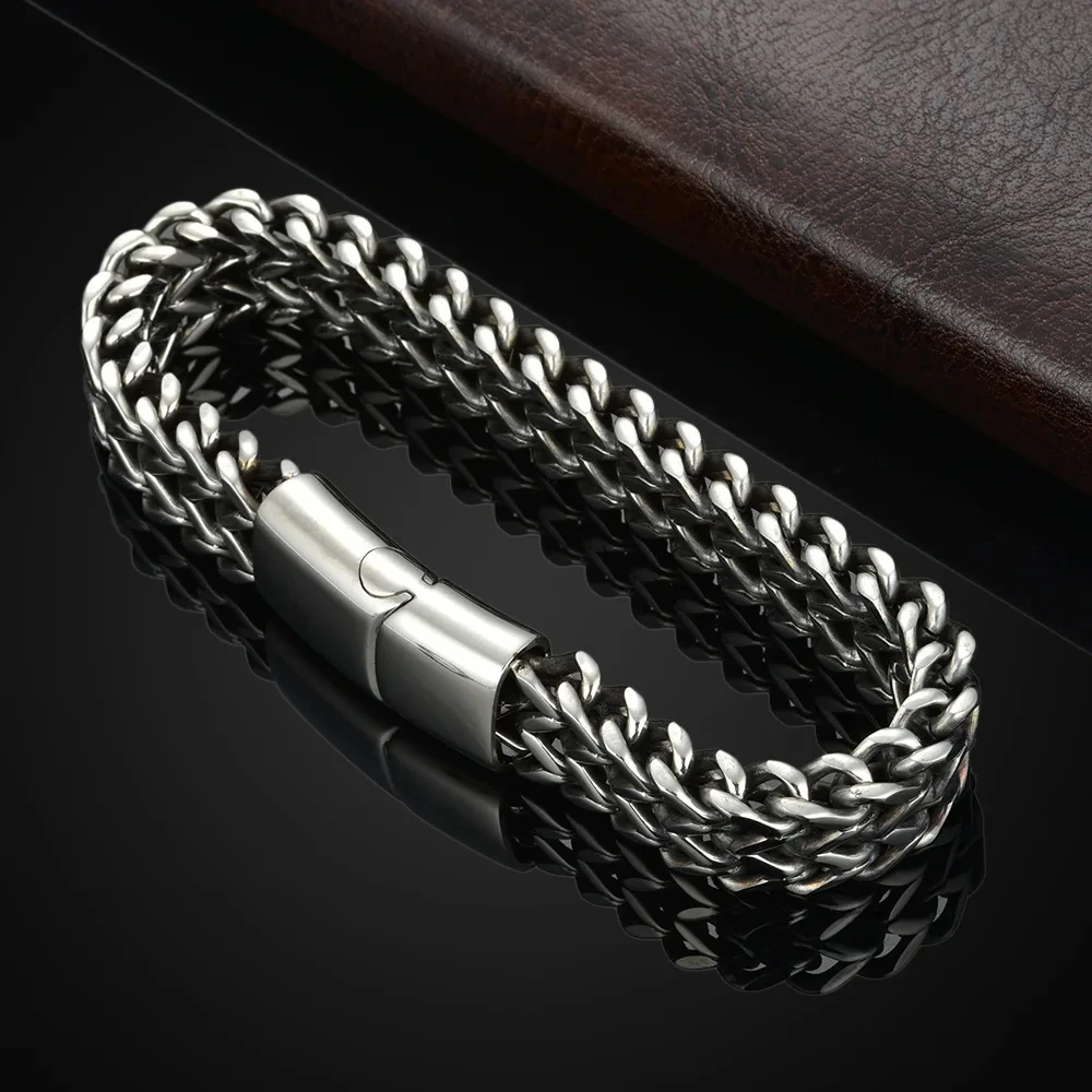 58 reviews for Stainless Steel Braided Double Row Front and Rear Fish Scale Alloy Magnetic Buckle Bracelet with Keel Jewelry New Model