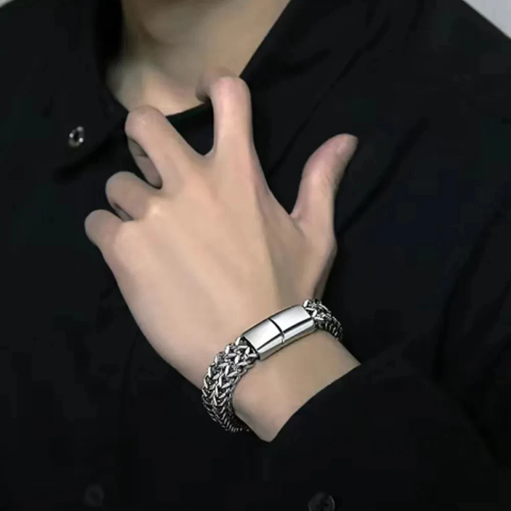 Stainless Steel Braided Double Row Front and Rear Fish Scale Alloy Magnetic Buckle Bracelet with Keel Jewelry New Model