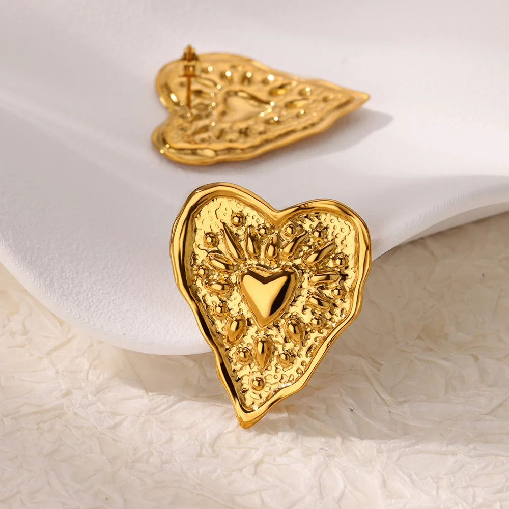 52 reviews for Stainless Steel Irregular Heart Texture Stud Earring for Women Gold Color Heart Wedding Aesthetic Earring Jewelry Accessories