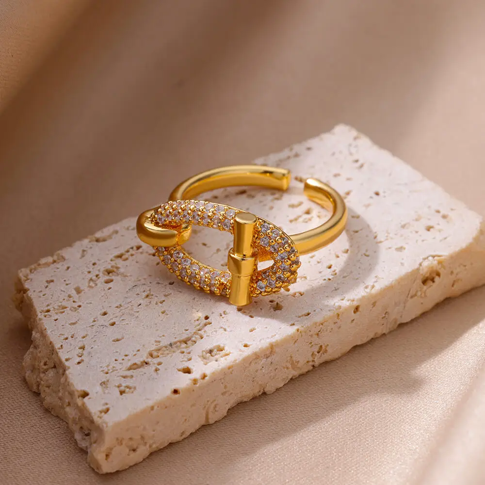 Stainless Steel Oval Hollow Zircon Open Rings For Women Gold Color Trendy Wedding Aesthetic Ring Summer Jewelry Accessories BFF