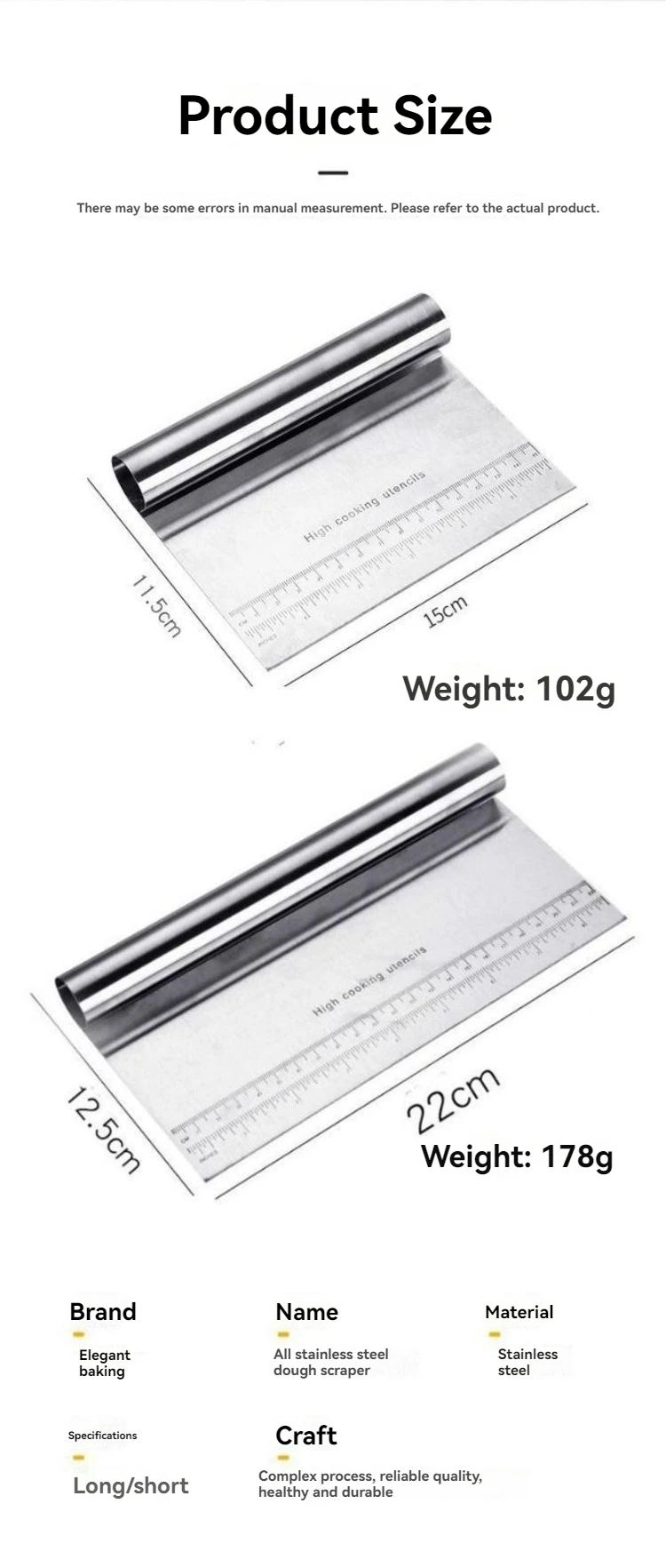 53 reviews for Stainless Steel Scraper Cake Sachima Cream Scraper Sausage Flour Scraper Cut Dough Baking Scraper Multifunctional Cutting Knife